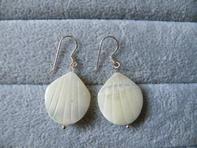 R00115.貝 シェル シルバー925 ハンドメイド ピアス
