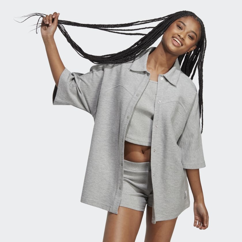ドレスアップもドレスダウンもできる、快適な着心地のシャツ。このアディダスシャツは、素材にソフトなコットンテリー生地を用いた、時間が経っても型崩れしにくい作り。スナップボタンを備えているからフィット感の調節も簡単。スリムなミディ丈スカートや、スポーティーなジョガーパンツと合わせても、ルーズシェイプがリラックスした雰囲気を生む。
