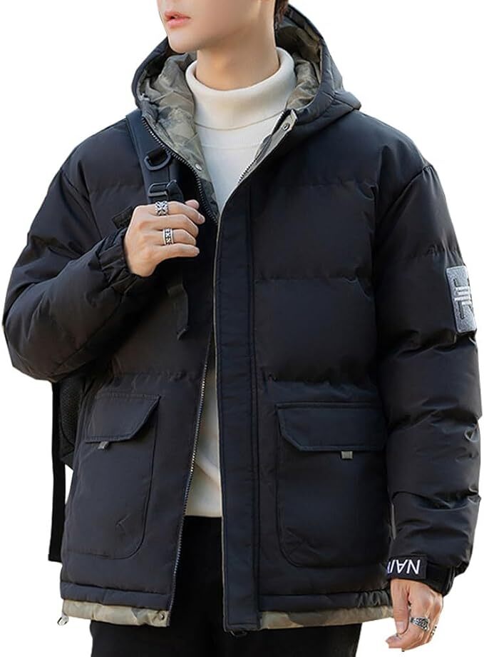[Inkpoo] アウター メンズ 冬服 中綿入り ダウンジャケット 暖かい ハイネック コート 厚手 防風 中綿ジャケット 2XL ※袖にやや汚れあり