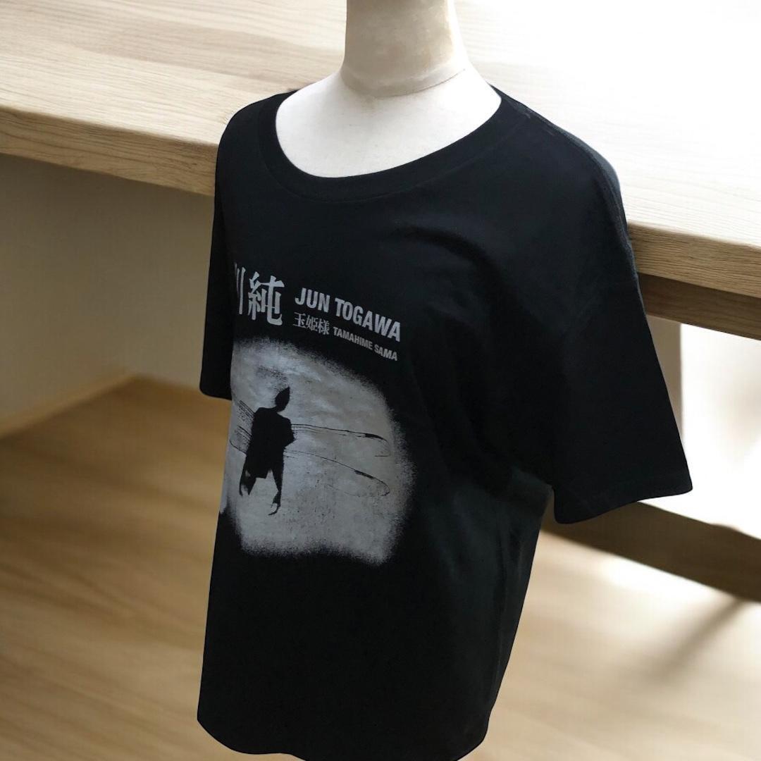 この独特なデザインのTシャツは、日本のカルトアイコン戸川純の「玉姫様」をフィーチャーしています。深みのある黒色の生地に映える、モノクロで描かれた剣を持つ人物のシルエットが印象的です。背中を向けたポーズは神秘的な雰囲気を醸し出し、視覚的に引き込まれます。上部には戸川純の名前が日本語で、下部には「玉姫様」と英語で彼女の名前が記されており、ファンならずともその存在感に惹かれること間違いなしです。このTシャツは音楽やアートを愛する人々への贈り物として、また自身への特別なご褒美として最適です。
