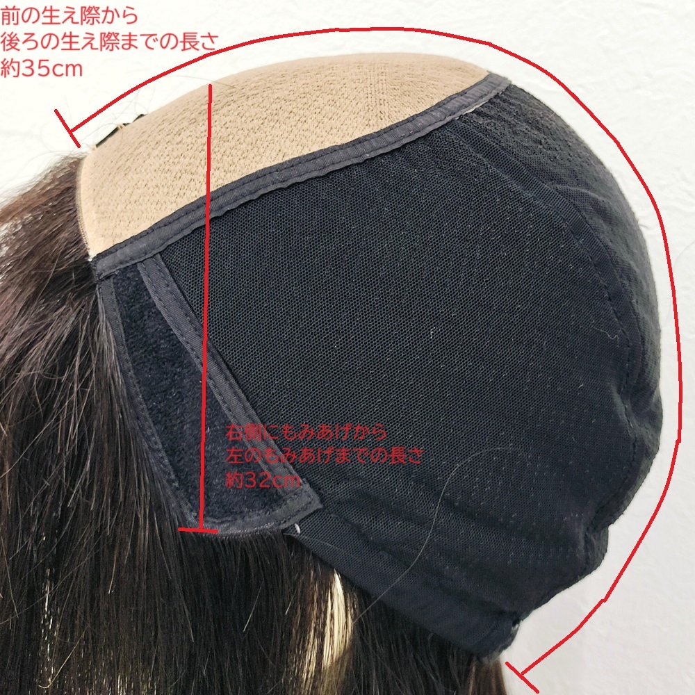 【毛の長さ】 ・前髪の長さ:約30cm ・ トップの長さ:約30cm ・ 後ろの長さ:約30cm ・ 頭頂部から後ろの一番長いところまでの長さ:約50cm(1枚目の画像を確認してください) *こちらの商品は前髪が長いまま(約30cm)になっておりますので お好きな長さ・デザインにカットしてご使用いただけます。カツラを装着したまま少しずつ 好みの前髪に仕上げてください。 【分け目】