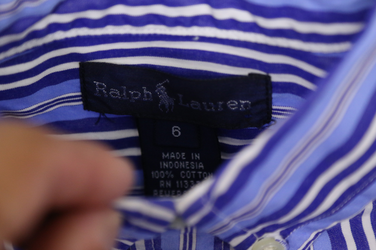 | アクセス頂きありがとうございます。 こちらはアメリカ買付古着 ラルフローレンシャツです。 使用感はありますが状態は良いと思います。 サイズ 6 着丈 52cm 身幅(平置き) 39.5cm 肩幅 31.5cm 袖丈 42cm その他、多数出品しております。 こちらもご覧下さい |