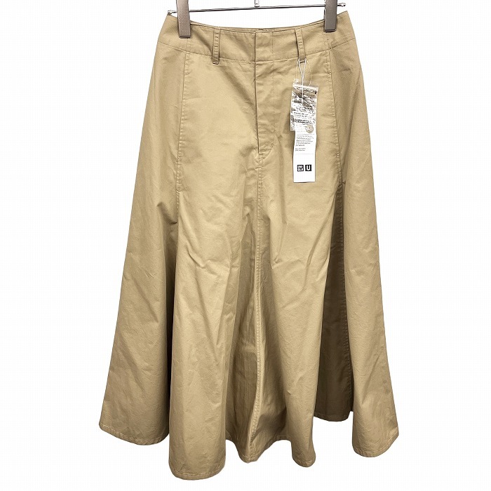 商品タイトル | ユニクロユー 【新品/訳アリ】Uniqlo U コットンツイル フレアスカート 無地 裏地無し ロング 綿100% 58 ベージュ レディース |