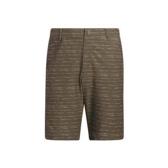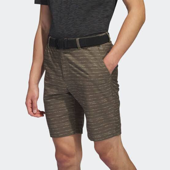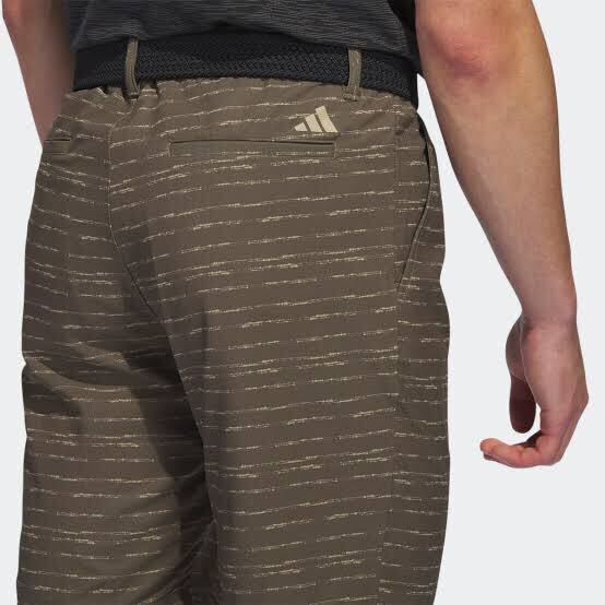 adidasのボーダー ショートパンツ TEXTURED 9 INCH GOLF SHORT。通気性と伸縮性のある生地で作られており、快適な穿き心地がボールショットの邪魔をしません。上部はルーズフィット、膝はスリムフィットでずれないつくり。一部、リサイクル素材を使用している環境を考えたアイテムなのもポイント。