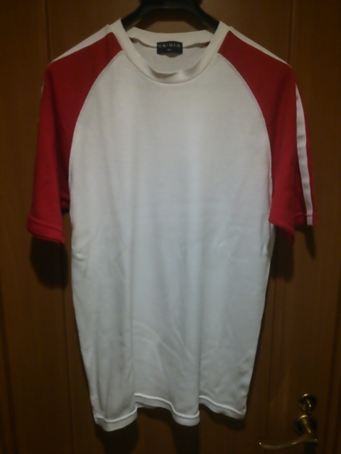 ホワイト×レッド、程よい厚みのさらりとしたコットン素材、オールドユニクロ。