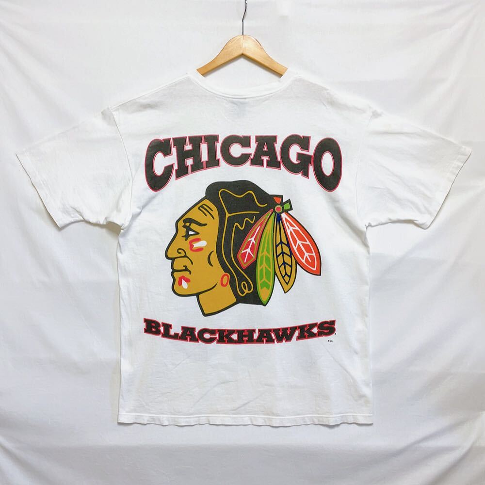 90s NHL ルーニーテューンズ ワーナーブラザーズ Tシャツ キャラT ビンテージ USA製 シカゴ ブラックホークス 両面プリント
