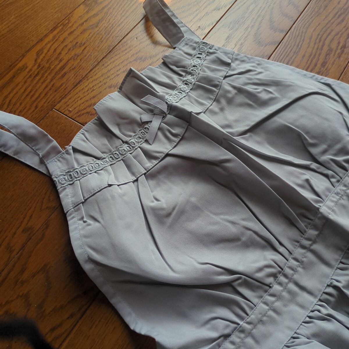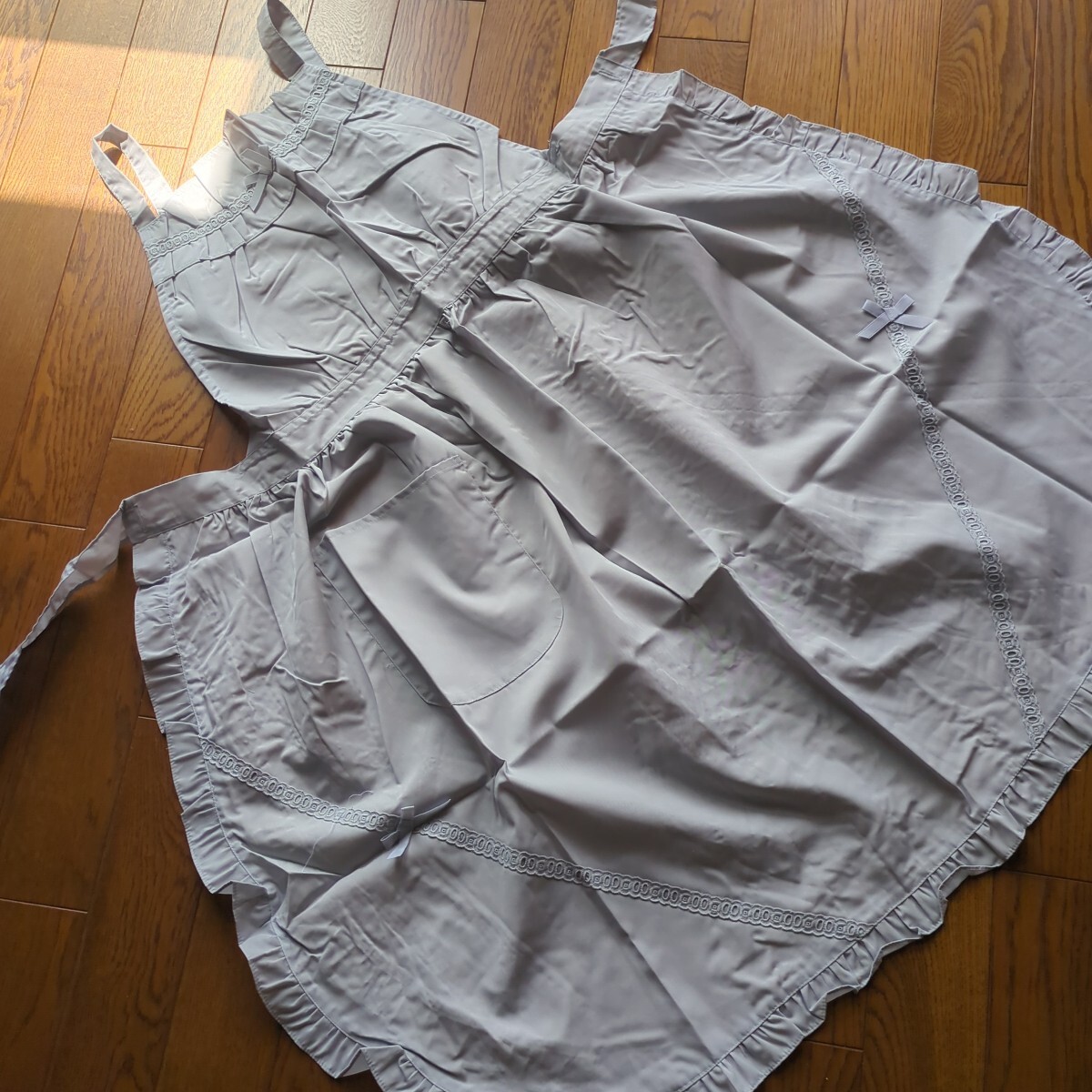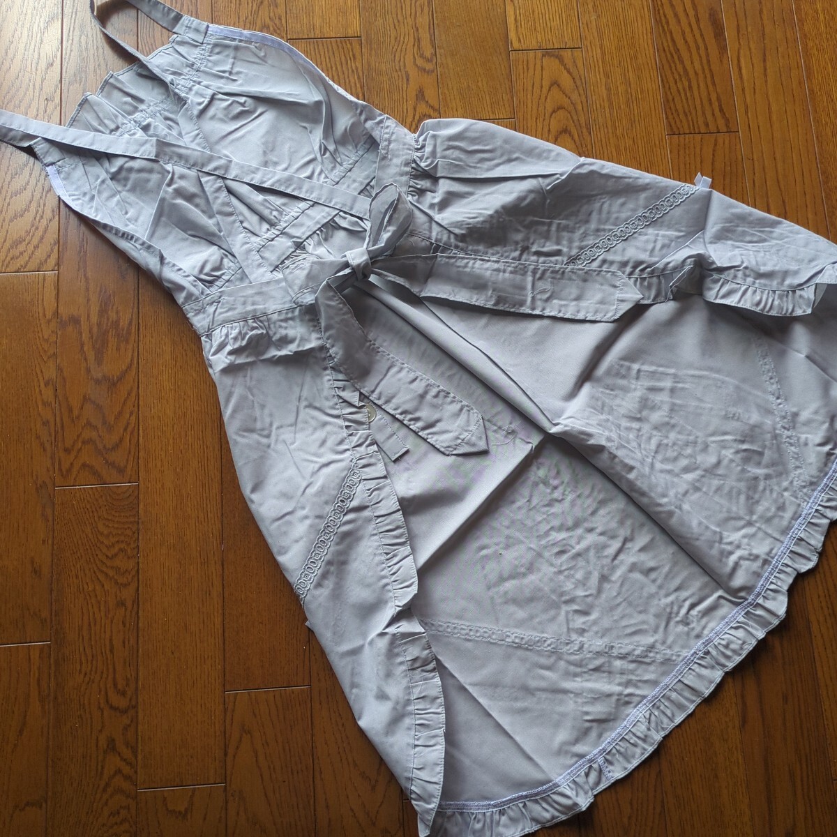 未使用経年品 フェミニンエプロン胸元ギャザーでおしゃれ!渋くて可愛い! カラー:グレー サイズ約:丈(胸元から)81cm 胸元幅23cm ウエスト部幅58cm エプロン最大幅87cm 素材:ポリエステル65%綿35%日本製 経年品に付きご理解いただける方、ノークレームノーリタイムでご入札をお願いします。発送はネコポスを予定しております。お支払い方法は Yahoo! 簡単決済よろしくお願いします。