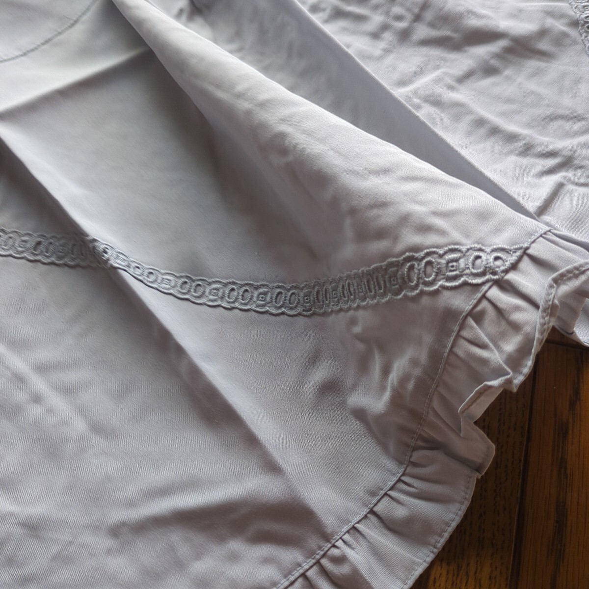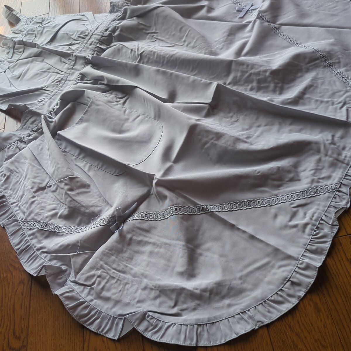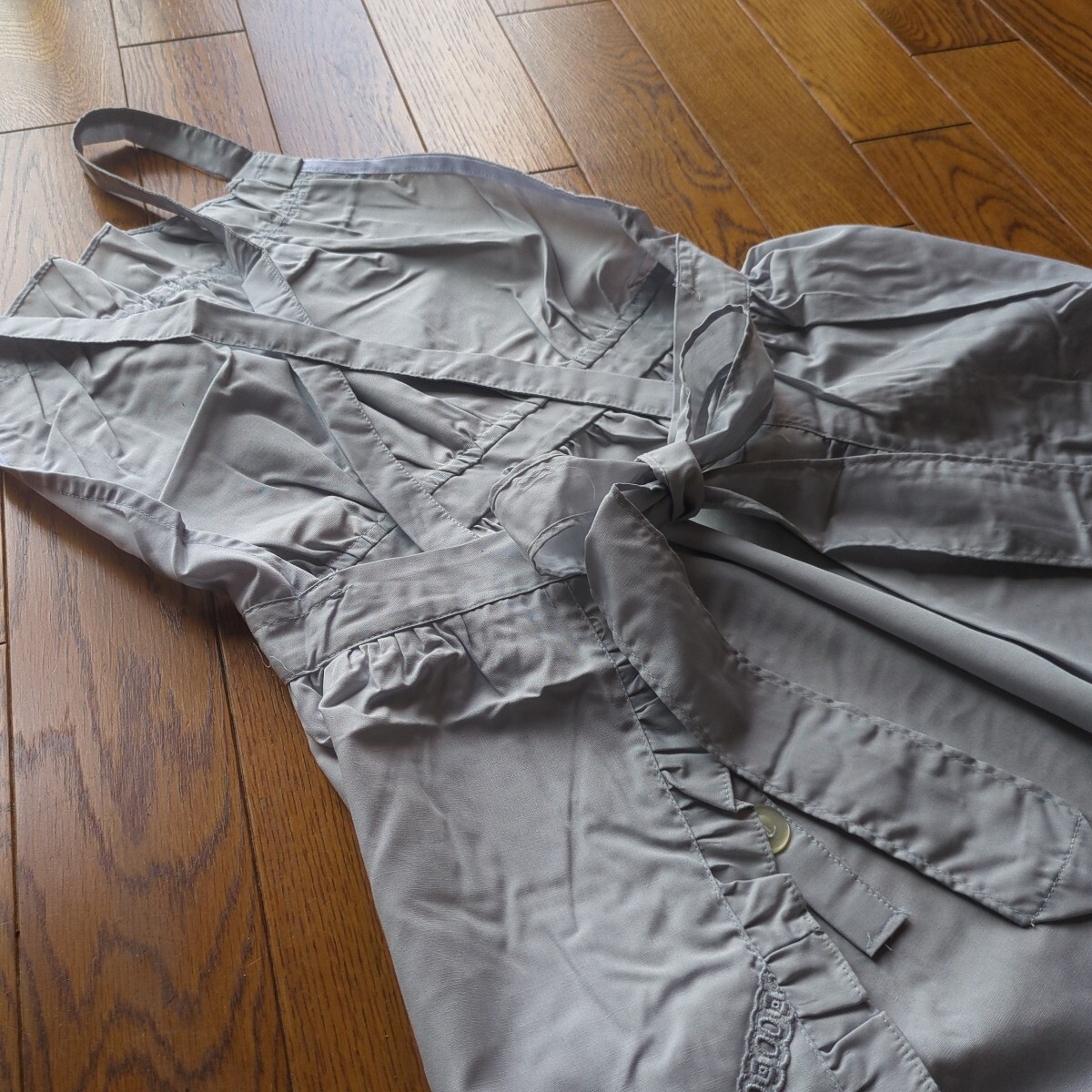 未使用経年品 フェミニンエプロン胸元ギャザーでおしゃれ!渋くて可愛い! カラー:グレー サイズ約:丈(胸元から)81cm 胸元幅23cm ウエスト部幅58cm エプロン最大幅87cm 素材:ポリエステル65%綿35%日本製 経年品に付きご理解いただける方、ノークレームノーリタイムでご入札をお願いします。発送はネコポスを予定しております。お支払い方法は Yahoo! 簡単決済よろしくお願いします。
