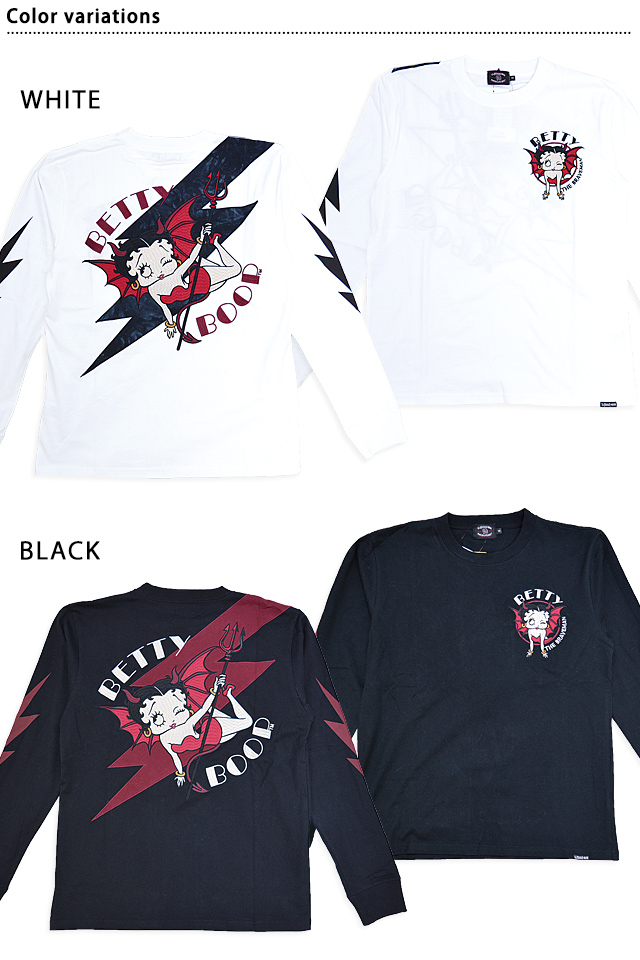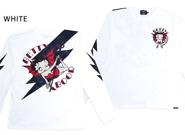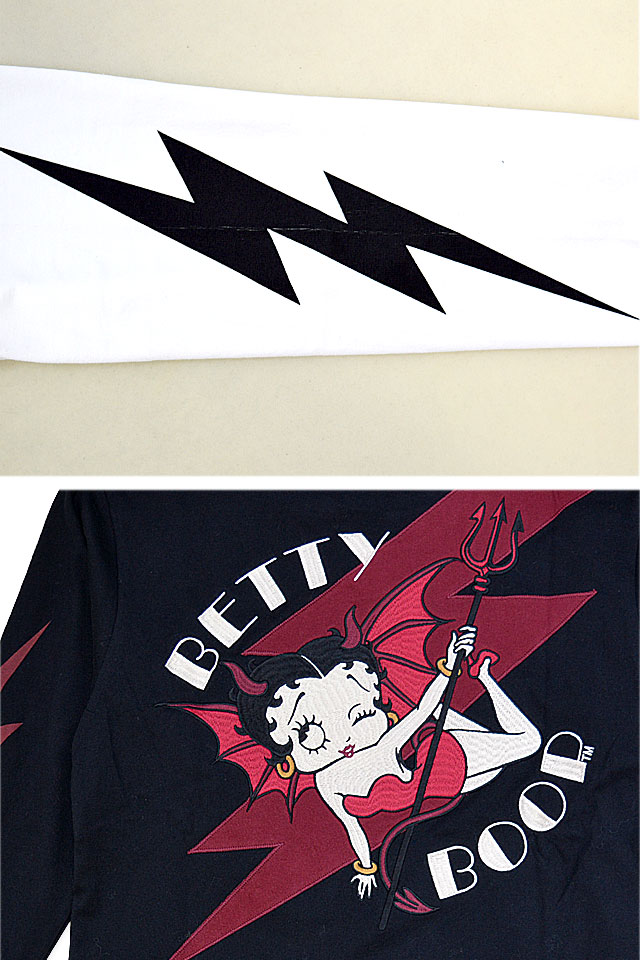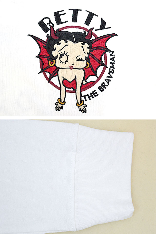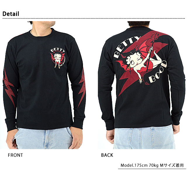 1920年代~40年代にアメリカでワークウェアを中心とした製品を世に送り出したブランド「The BRAVE-MAN」から「BR×BETTYコラボ 天竺ロングTシャツ(BBB-2444)」のご紹介です。 大きな瞳とぽってりした赤い唇が印象的な女の子、ベティ・ブープ(Betty Boop)。 背中には悪魔に扮したベティの姿が刺繍で落とし込まれています。 バックにしっかり柄を入れている分、フロントはシンプルにデザインし、メリハリを付けました。 ボディーには天竺生地を採用。 襟元、袖口にはリブを縫い付け、野暮ったさを軽減しました。 カジュアルに着こなしに取り入れることの出来る、大人のキャラクターアイテムです。 | |||||||||||||||||||||||||