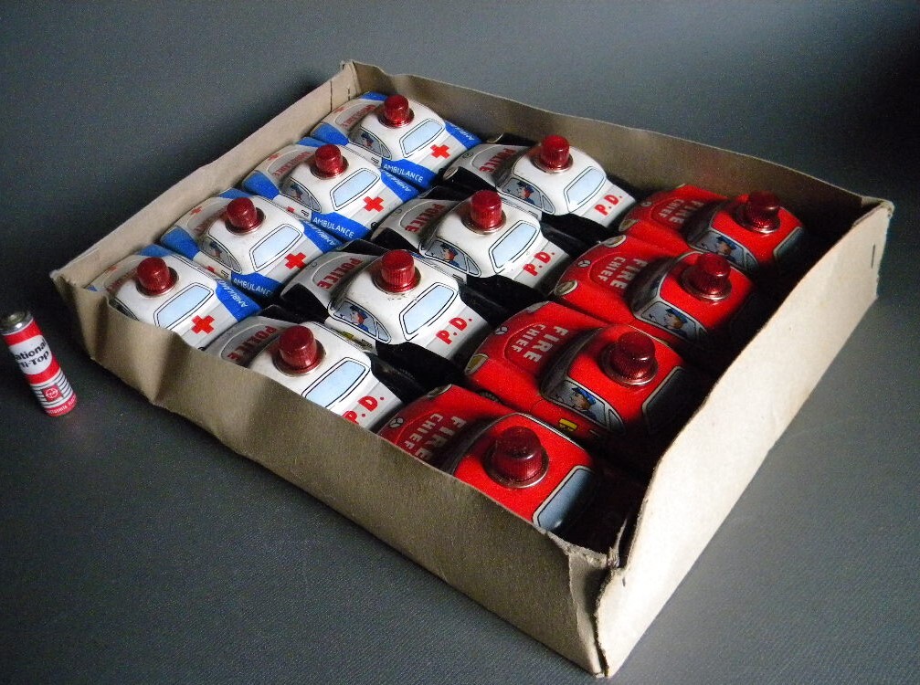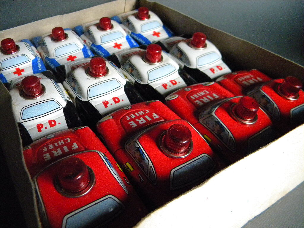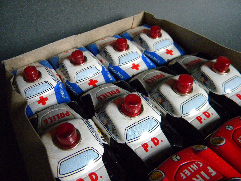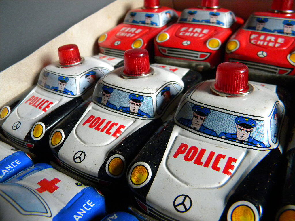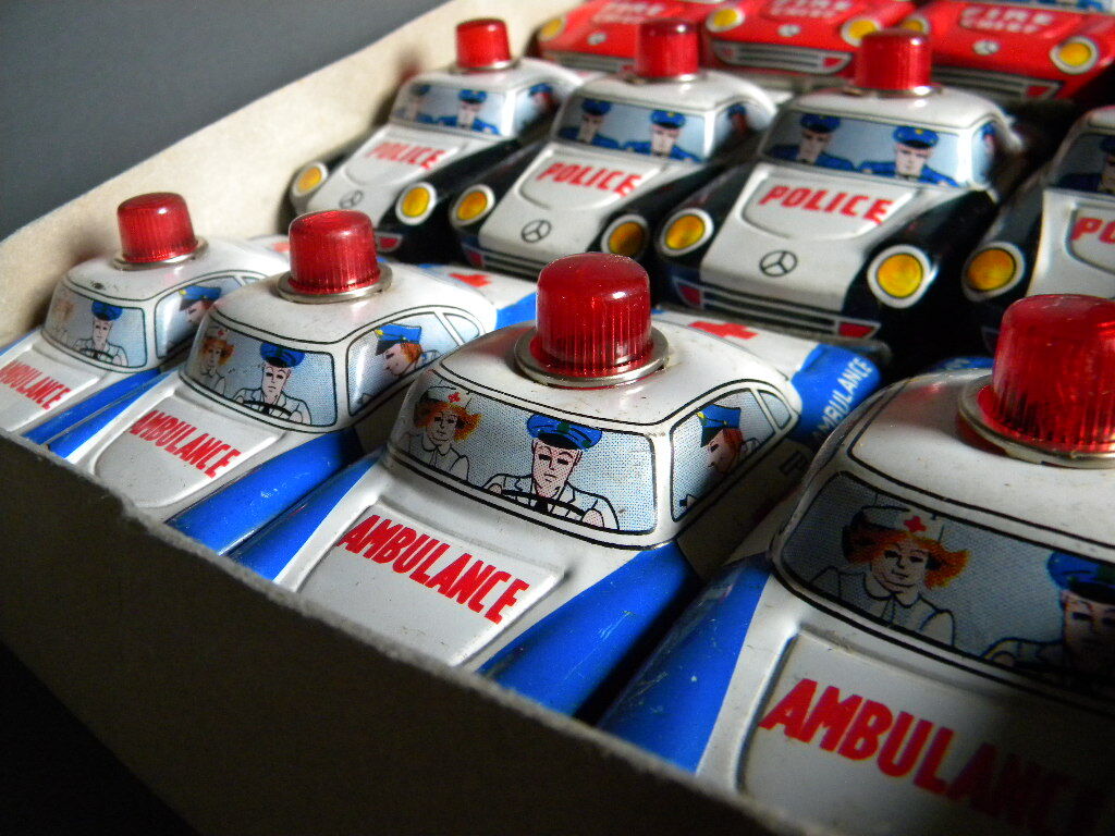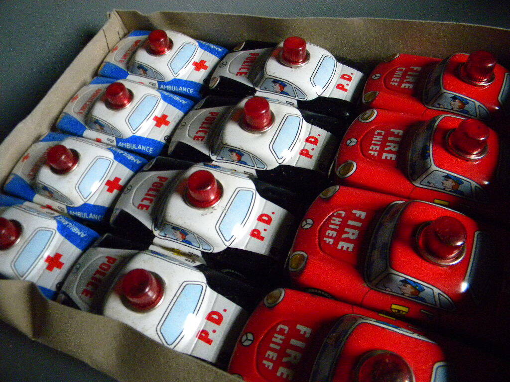 当時物 ★★フリクション&パトランプ 発火 パトカー 救急車 12p 消防車 !! ブリキ日本製 POLICE 旧車 アメ車 ★★未使用 デッドストック品
