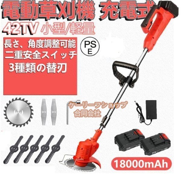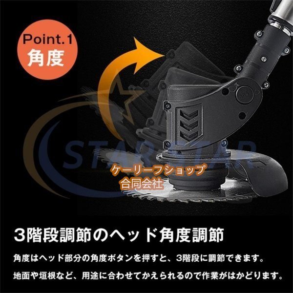 新品★草刈機 充電式 電動 電動草刈り機 刈払機 コードレス 伸縮 角度調整 雑草 替刃付き バッテリ2個付き 無線 軽量 PSE認証