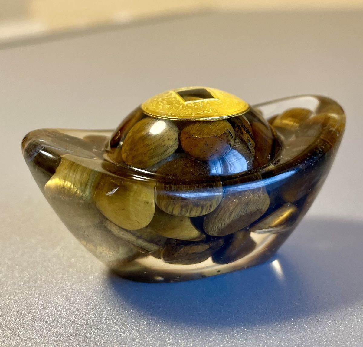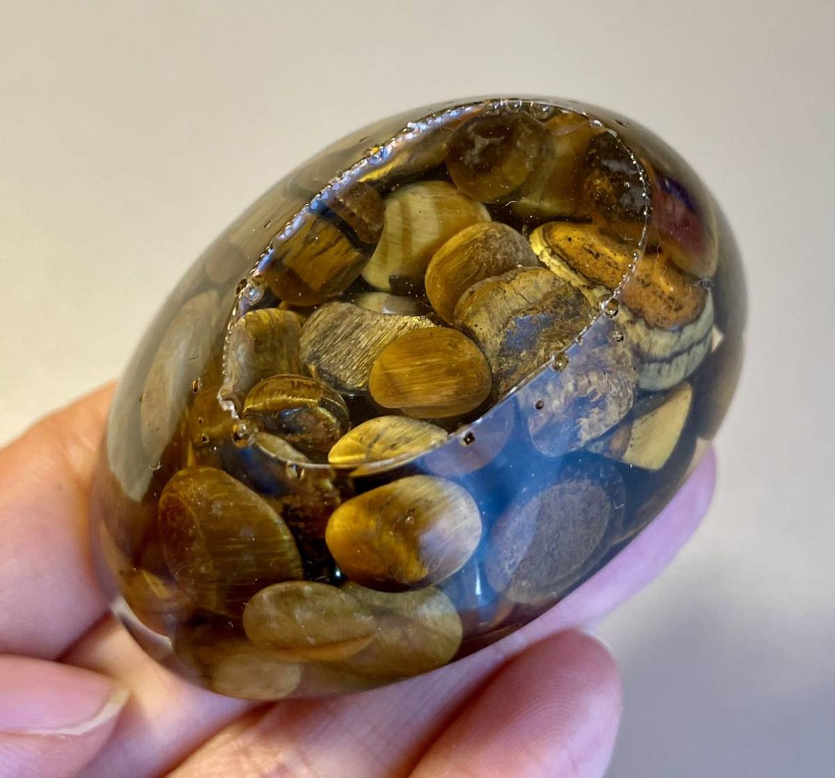 ●オルゴナイトは天然石を樹脂で固めて作られています。クリスタルは樹脂の中で適度な圧力がかかるとピエゾ効果で微弱電位を発生します。