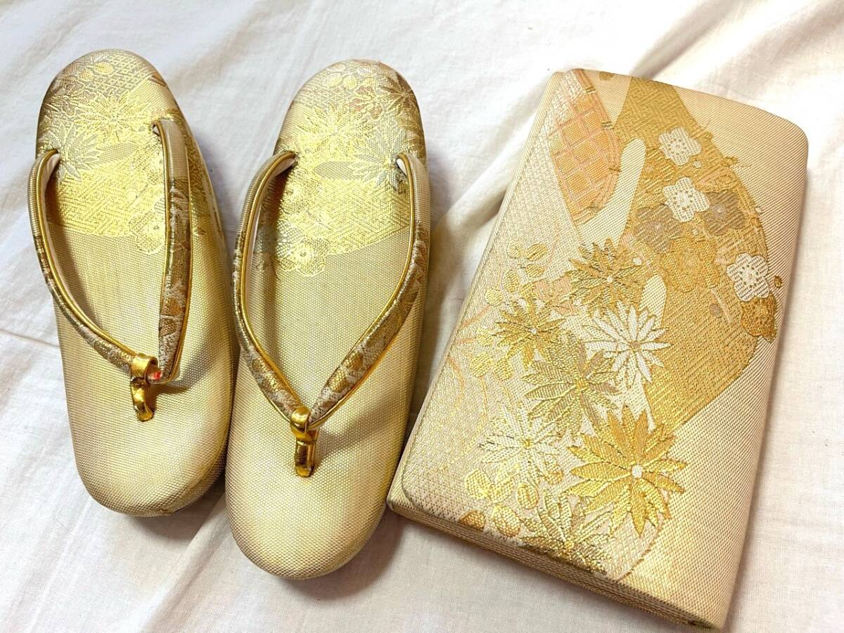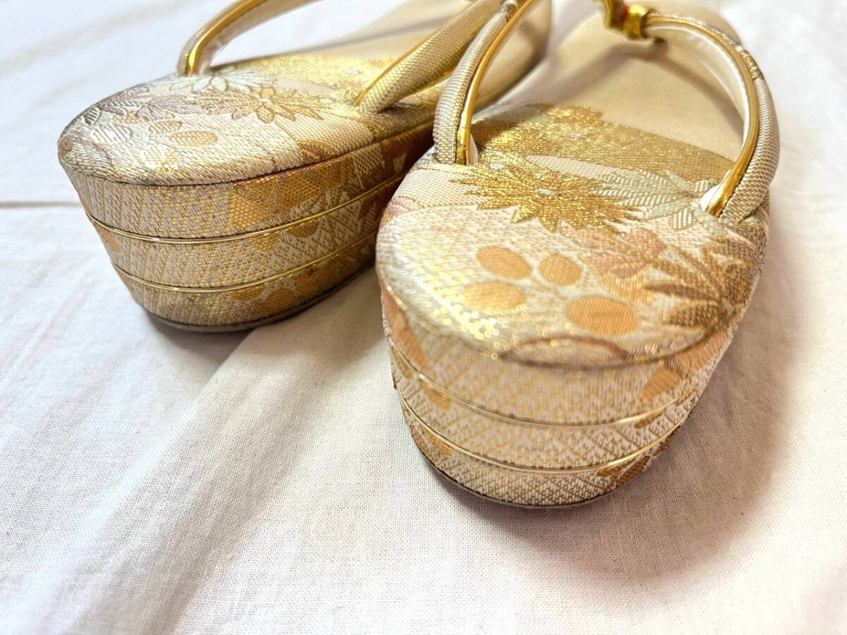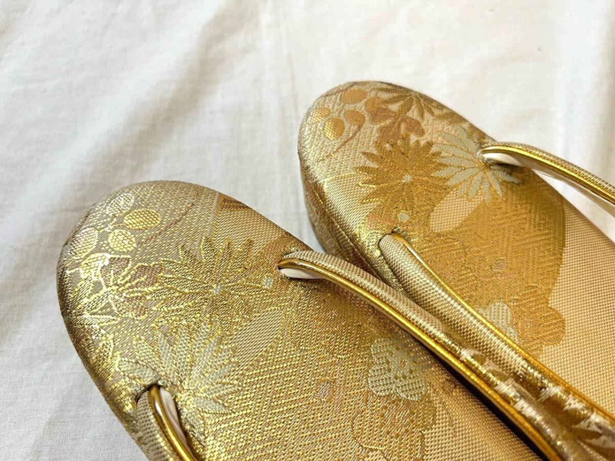 0004★バッグ、草履セット*ゴールド*花*草履23cm*着物*和装小物*和服*レトロ*アンティーク*お得*レディース★