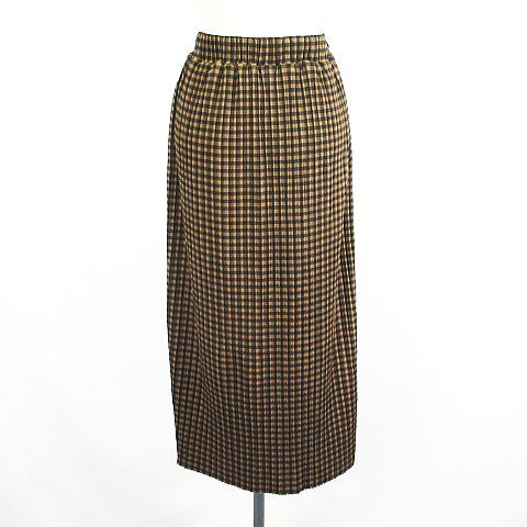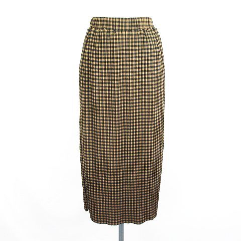 未使用品 ローリーズファーム LOWRYS FARM スカート ボトムス ロング丈 プリーツ タイト チェック イージー F ブラウン ※EKM レディース