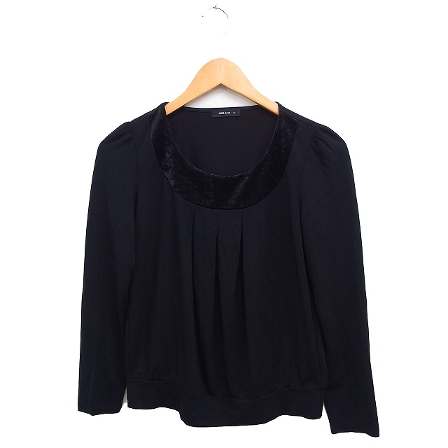コムサイズム COMME CA ISM 切替ベロア カットソー Tシャツ Uネック 9分袖 無地 M ブラック 黒 /FT46 レディース