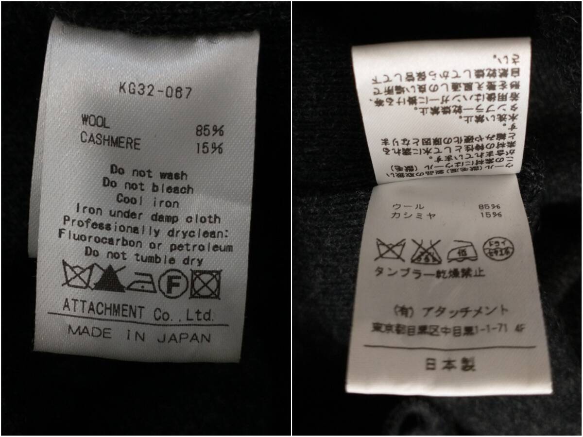 | ブランド:KASUYUKI KUMAGAI/ATTACHMENT 型番:KG32-067 表記サイズ:1 着丈:約62cm 袖丈:約61cm 身幅約:47cm 肩幅:約45cm 素材:ウール/カシミヤ カラー:チャコールグレー ※背面に小さなほつれあり |
