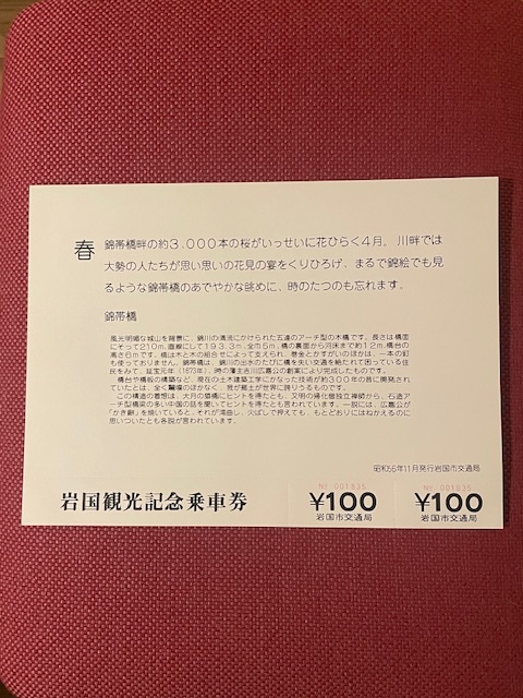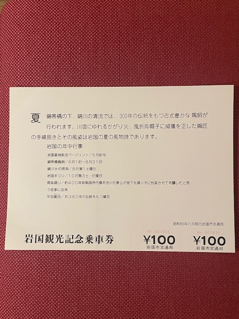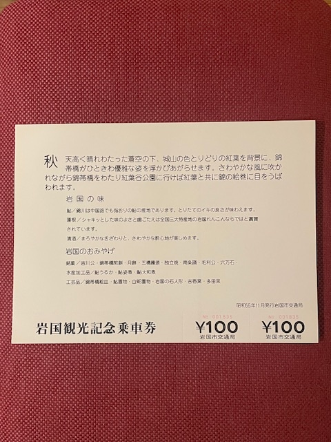 岩国市交通局 岩国観光記念乗車券 (管理番号59-27)