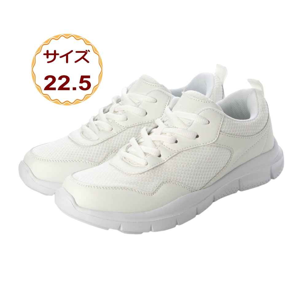 スニーカー 運動靴 スクール ランニング シューズ 作業靴 軽量 3E 幅広 通学 コンフォート 男女兼用 ホワイト 白 24249-wht-225 22.5cm