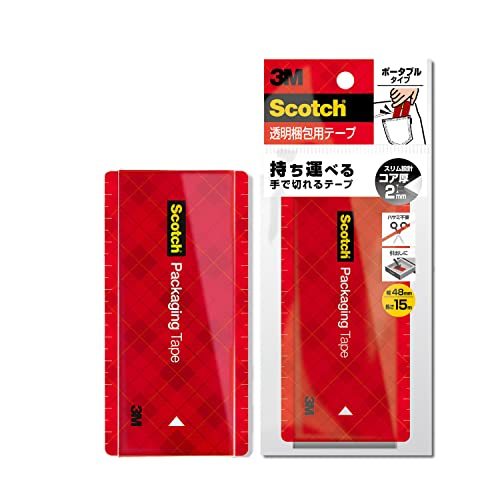 「3M スコッチ ガムテープ ポケットサイズ 梱包テープ 手でまっすぐ切れて音が静か ポータブル 15m 3852FLT-15-RD」▼4550309190132▼(商品説明)フラットタイプ 15m・透明 15m 3852FLT-15-RD・・Style:フラットタイプ 15m・新発想!梱包テープがコンパクトに。従来の梱包テープの10分の1のコンパクトさを実現。・手軽に持ち運べる。また、保管スペースを節約でき、収納時に邪魔にならない。机の引き出しなどにも収納できる薄さ。・はさみやカッターを使わずに手でまっすぐ切れるので、手軽に使用可能。また、透明テープ独特のテープを引き出す際の不快な音がほとんどなく、周囲を気にせずどこでも使うことができる。・サイズ:幅48mm、長さ15m・基材:特殊ポリプロピレンフィルム、粘着剤:ゴム系粘着剤説明 ポケットサイズのガムテープ。新発想!梱包テープがコンパクトになって、ポケットサイズに。従来の梱包テープの10分の1のコンパクトさを実現。手軽に持ち運べる。また、保管スペースを節約でき、収納時に邪魔にならない。机の引き出しなどにも収納できる薄さ。はさみやカッターを使わずに手でまっすぐ切れるので、手軽に使用可能。また、透明テープ独特のテープを引き出す際の不快な音がほとんどなく、周囲を気にせずどこでも使うことができる。アウトドア・キャンプ・旅行などでの身の回りの整理やグッズの応急補修に。収納スペースを取らないので、防災・災害対策などの防災グッズ・備蓄に最適。