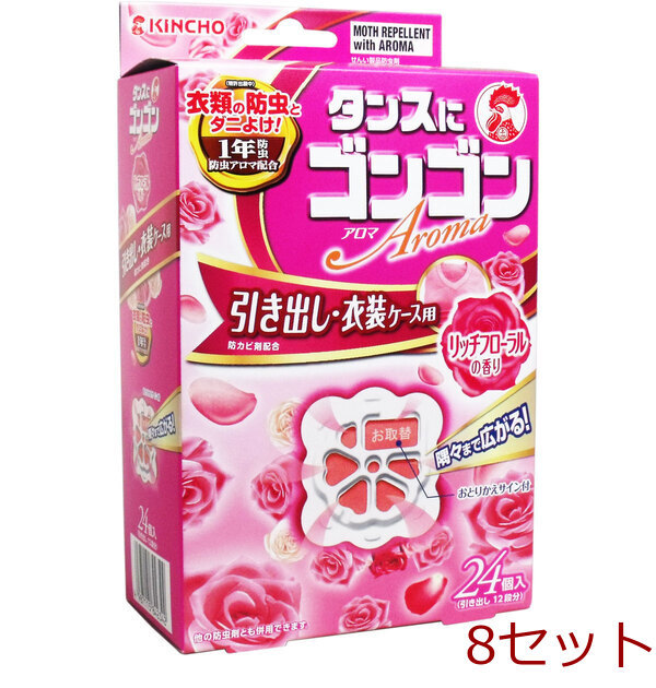 衣類の防虫とダニよけ! 防虫アロマとエムペントリンの防虫W効果! 収納内にダニを寄せ付けません! ●優雅な香りがずっと続いて、しっかり防虫! ●におわない防カビ成分配合! カビの発育を抑え、衣類を守ります。 ●コンパクトな使いやすいデザイン。 ●お取替えサイン付 「お取替え」の白い文字が出たら、お取替えください。 ●毛皮、金糸・銀糸・ラメ加工・皮革製品等にも使用できます。 ●他の防虫剤(パラジクロルベンゼン、ナフタリン、樟脳等)と併用しても差しつかえありません。 個装サイズ:120X195X60mm 個装重量:約95g 内容量:24個入 【成分】 防虫成分:エムペントリン(蒸散性ピレスロイド)、ハーブ成分(主としてテルピネオール) 防カビ成分:イソチアゾリン系防カビ剤 【ご使用方法】 袋から取り出して、衣類の上に置いてご使用ください 和ダンス、整理ダンス、洋服箱などにもご使用いただけます。 【適応害虫】 イガ、コイガ、ヒメカツオブシムシ、ヒメマルカツオブシムシ 【ご使用の目安】 下記の寸法程度の衣類箱や和ダンスの引き出しの場合(厚手セーターなら約6着分)、ゴンゴン2個がご使用の目安です。 ●高さ18cm×幅43cm×奥行68cm ●高さ12cm×幅100cm×奥行40cm ※収納時、衣類に虫や汚れが付いていると食害やカビの原因となりますので、クリーニング等にて汚れをよく落としてからご収納ください。 【ご使用上の注意】 ・パッケージに記載されている使用量を守ってご使用ください。 ・衣類の入れ替えをするときは、部屋の換気を行ってください。 ・タンスの引き出しや衣装ケース等の密閉性のある収納容器でご使用ください。 ・幼児の手の届くところに置かないでください。 ・本品は食べられません 万一食べたときは医師にご相談ください。 ・誤食等の対応のため、使用中はパッケージを保管してください。 ・用途以外には使用しないでください (防カビ効果は、せんい製品防虫剤の用途で使用した場合の効果です。) 【保存方法】 密封して温度の低い直射日光の当たらないところで保存してください。 【標準使用量】 引き出し・衣装ケース(50L):2個 引き出し・衣装ケース(25L):1個 【有効期間】 使用開始後 約1年 (温度、収納容器及び使用状態等で一定しないことがあります。) 注意事項 予告なく成分・パッケージが変更になることがございます 予めご了承ください。 *予告なく成分・パッケージが変更になることがございます。予めご了承ください *ダンボールを使用して発送する場合には、入数以下の個数の場合、 中古ダンボールを使用する場合があり、ご注文の商品とは異なるダンボールになる場合があります。 あらかじめ、ご了承ください。 |