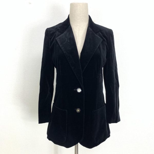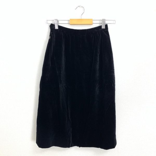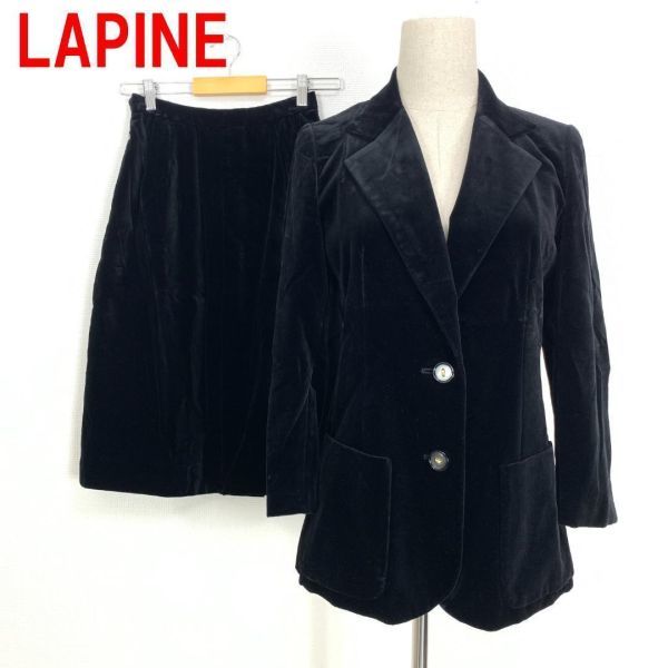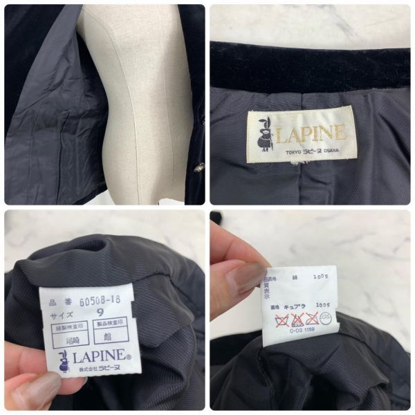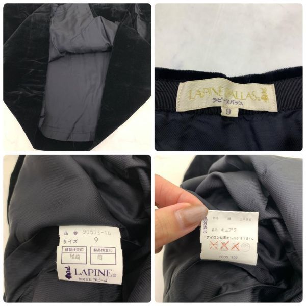 A968 ラピーヌ スカートスーツセット 綿 ベロア 裏地あり 黒 LAPINE コットン テーラードジャケット ひざ丈スカート タイト ブラック 9