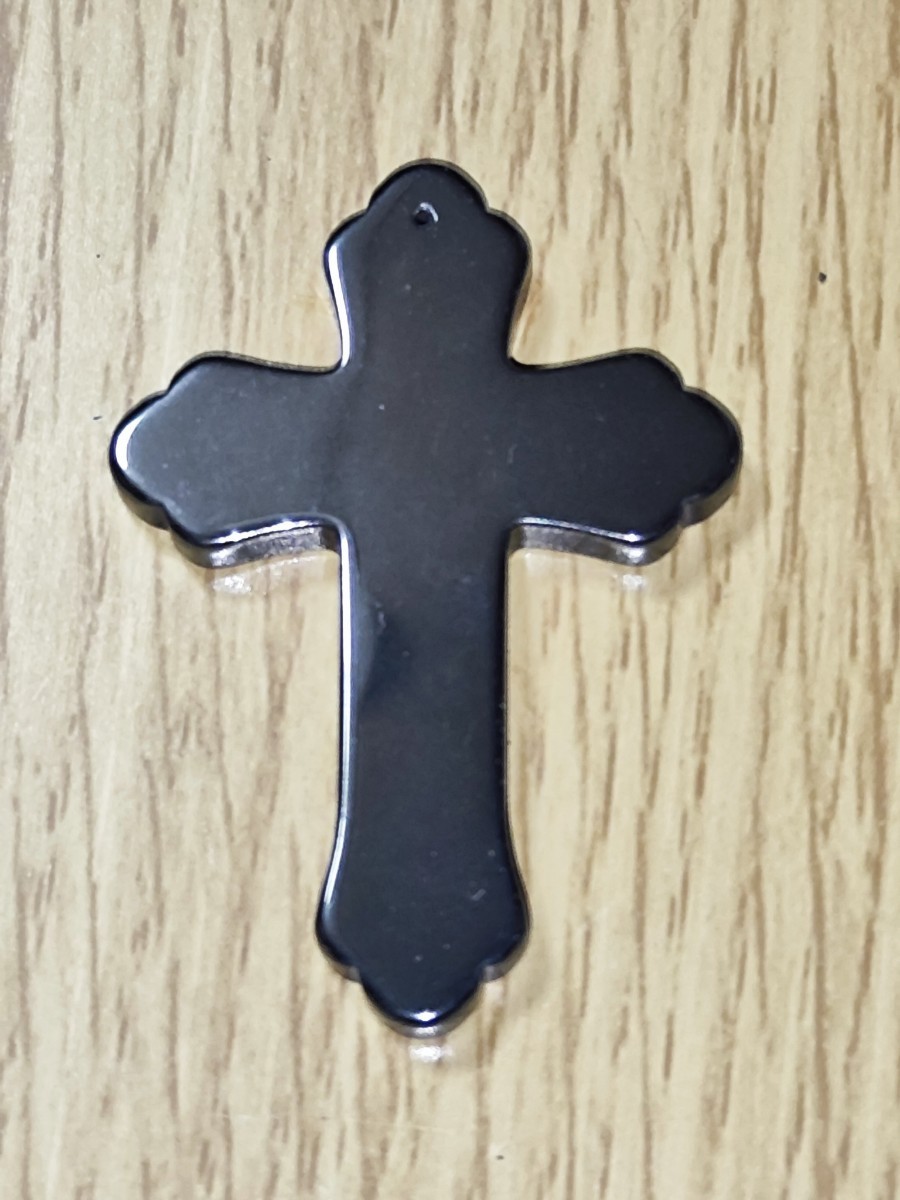 ☆商品詳細☆十字架黒色ブラッククロス首飾りネックレス用の出品です。首飾りネックレス用黒い十字架です。穴に輪っかを通し首飾りネックレスにお使いいただければと思います。重さは13gです。材質は金属系しかわかりません。状態は綺麗です。よろしくお願いいたします。