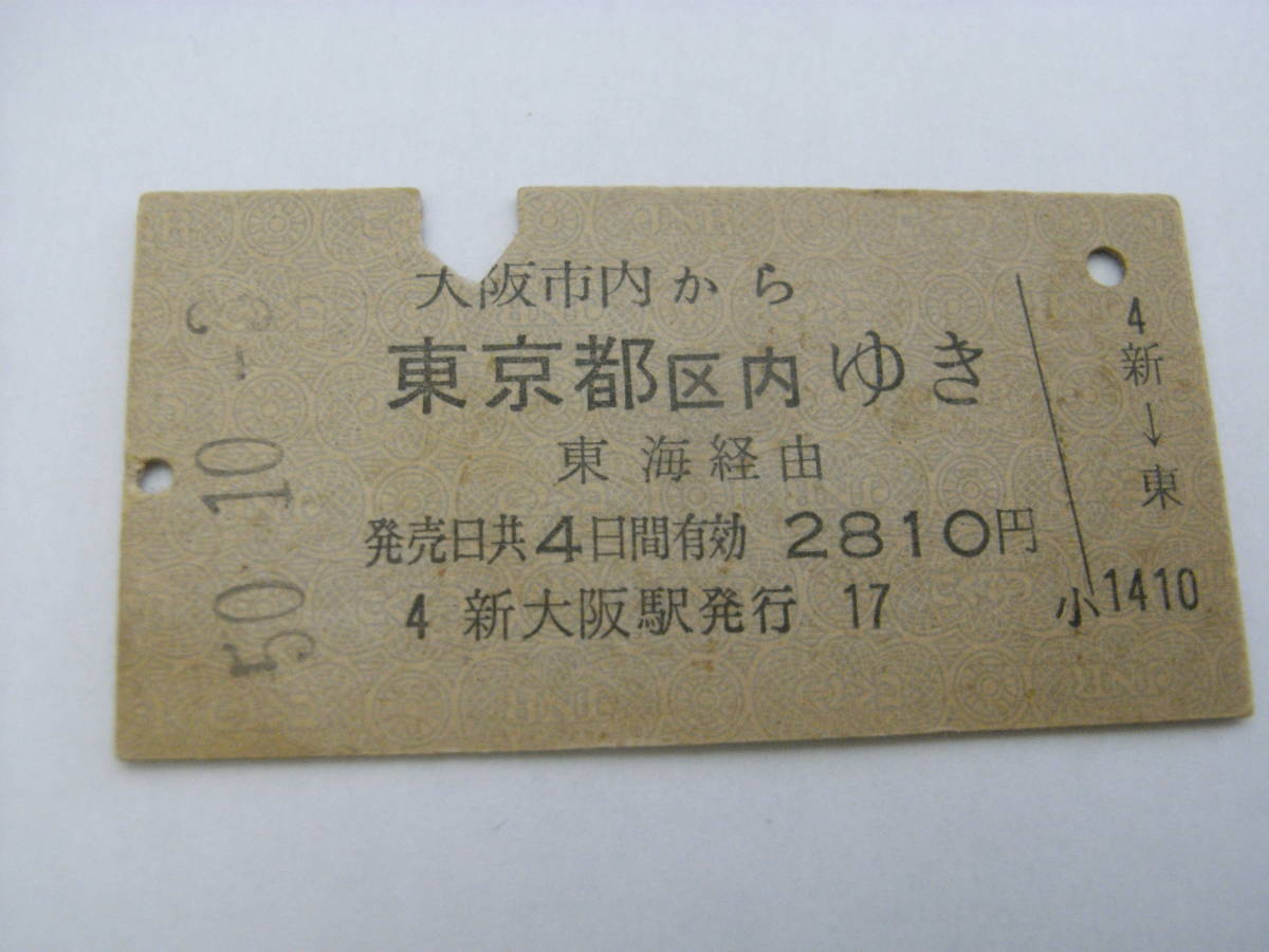 東海道本線 大阪市内から東京都区内ゆき 東海経由 昭和50年10月3日 新大阪駅発行 国鉄