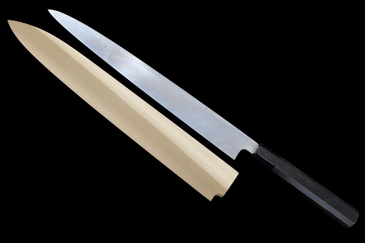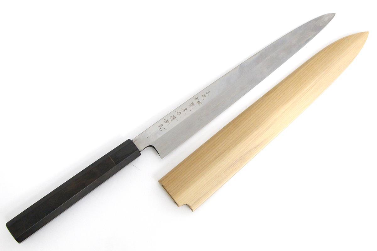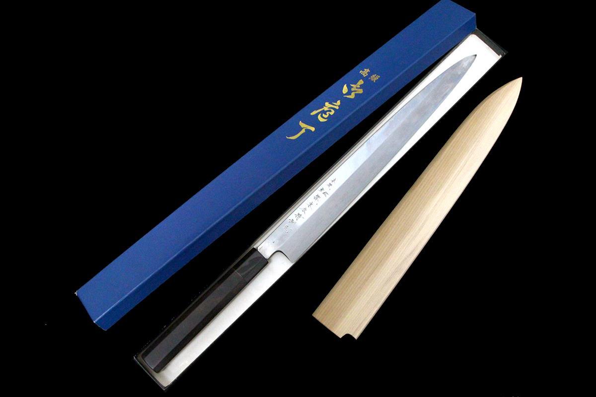 堺末広 柳刃包丁 尺一 本焼 黒檀柄 白鞘・箱付