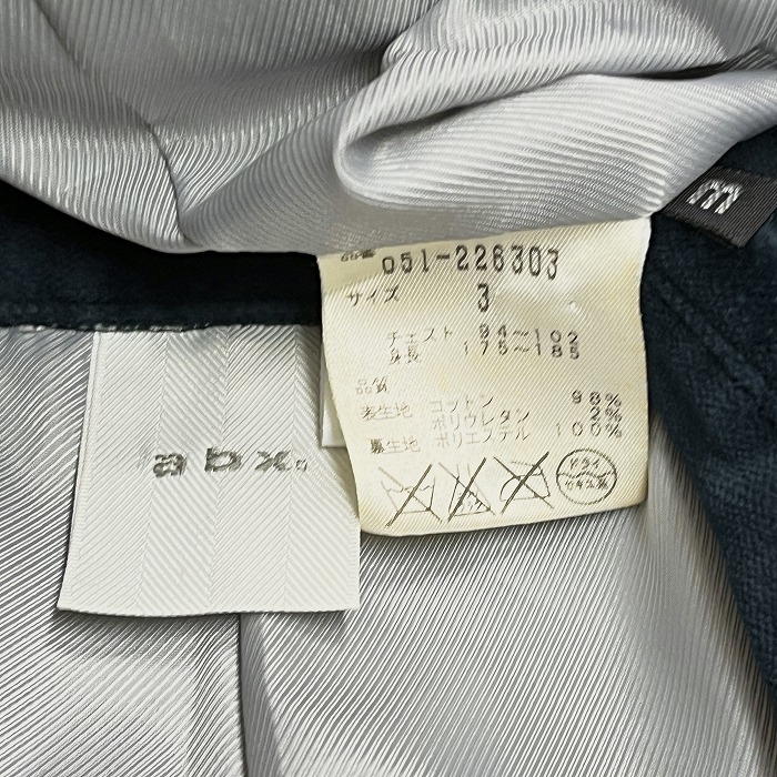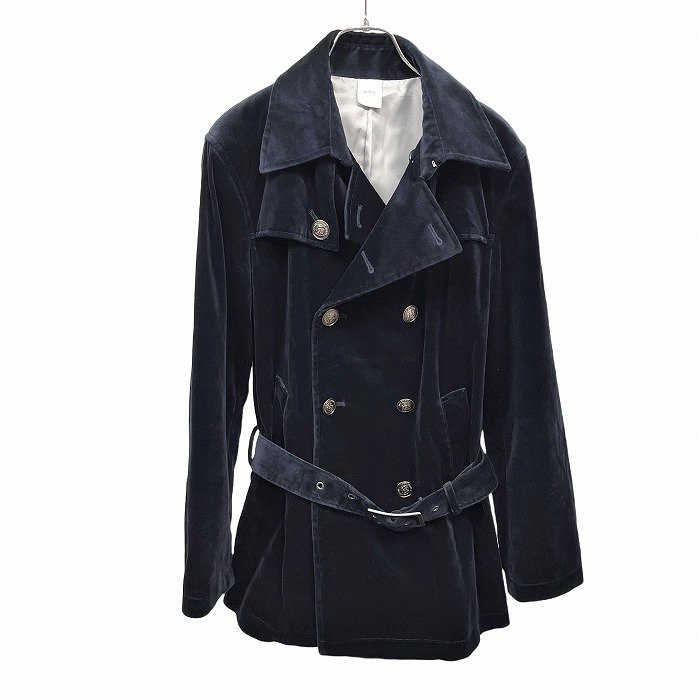 商品タイトル | エービーエックス abx ベロア コート 裏地付き ダブル ボタン留め 無地 長袖 ベルト付き 綿×ポリウレタン 3 ネイビー 紺 メンズ |