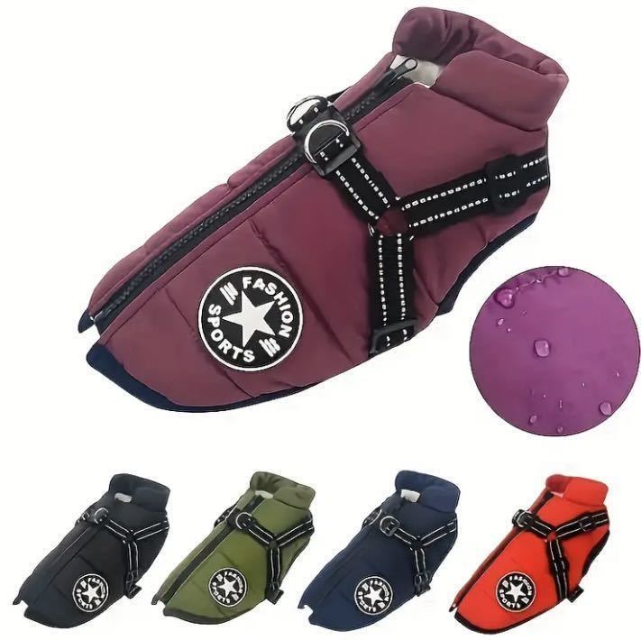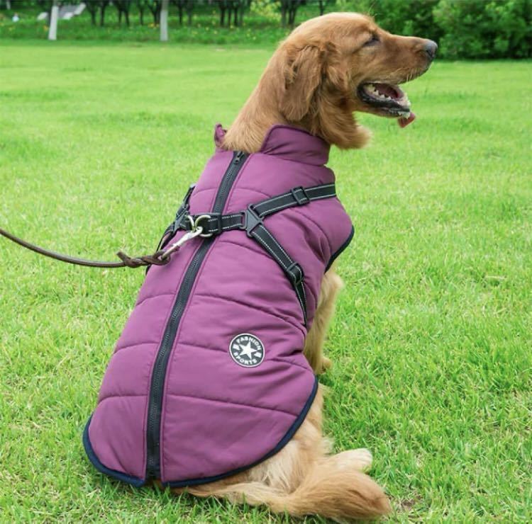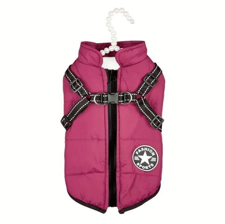 犬服 ベスト 冬 ダウン風 ハーネス 一体型 ジャケット アウター コート ハーネス付き 背中開き 防寒 ドッグウェア ペットウェア 背開き ペット服 フリース 裏起毛 中型犬 かわいい あったか 暖かい おしゃれ 散歩着 保温 撥水