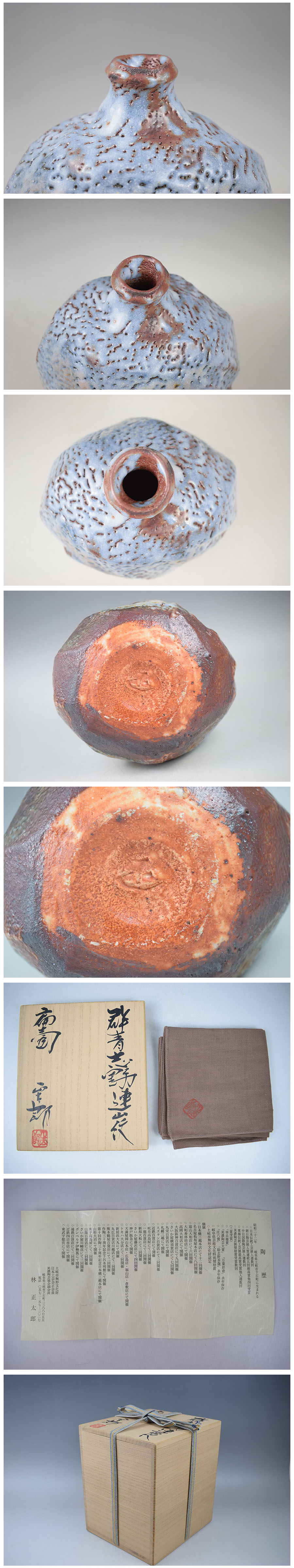 【林正太郎 群青志野連山紋扁壷 共箱 真作保証 】