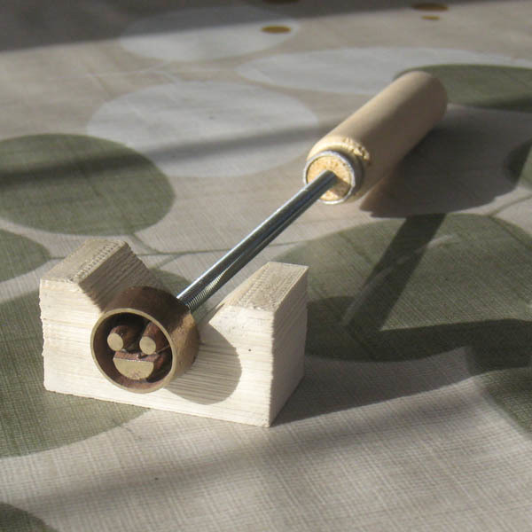 商品説明 | 顔文字4のミニ焼印です。 焼印は、柔らかいものにも押せるように6ミリの深彫の印面を採用しています。 写真の焼印を押した画像は、木板と厚紙と緑の革に押しています。 焼印についてのその他の説明はHPやyoutubeを参照下さい。 発送時に簡単な説明書を同封いたしますので御覧頂けれ ば幸いです。 直火式なので、コンロやバーナーで加熱して使います。 未使用ですが試し押しをしておりますので多少変色している 場合もあります点ご容赦下さい。 |