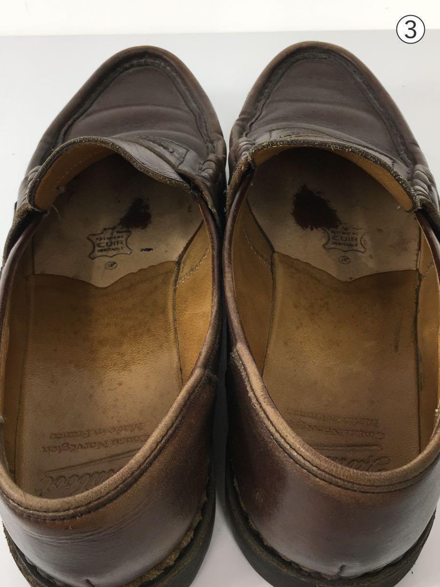 (1)使用感あり (2)使用感あり (3)使用感あり 経年劣化の為にソールの減りや擦れ傷、履きシワ、内部のシミ、剥がれ傷など多数の使用感ございます。 |