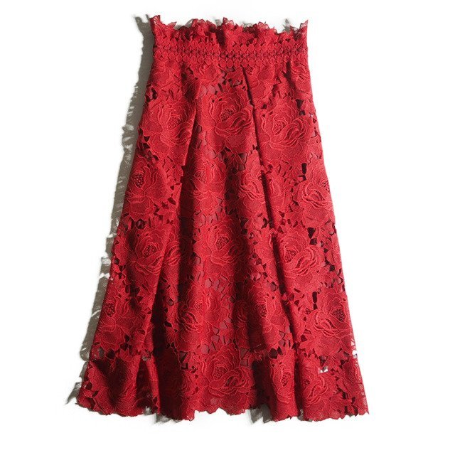ローズレーススカート レッド 36