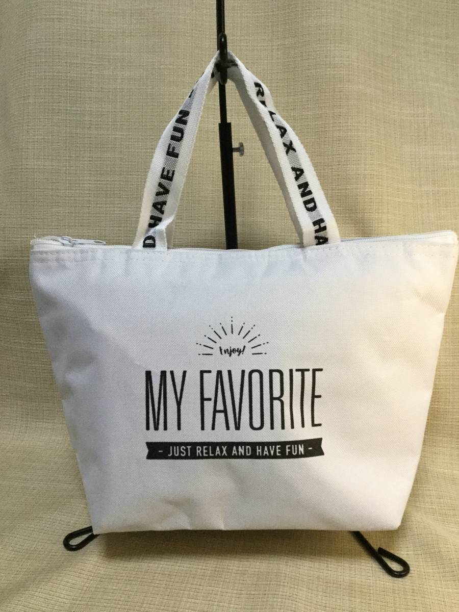 クーラーバッグ 白(ホワイト) MY FAVORITE - JUST RELAX AND HAVE FUN - ランチトート,ランチバッグ,弁当袋,トートバッグ
