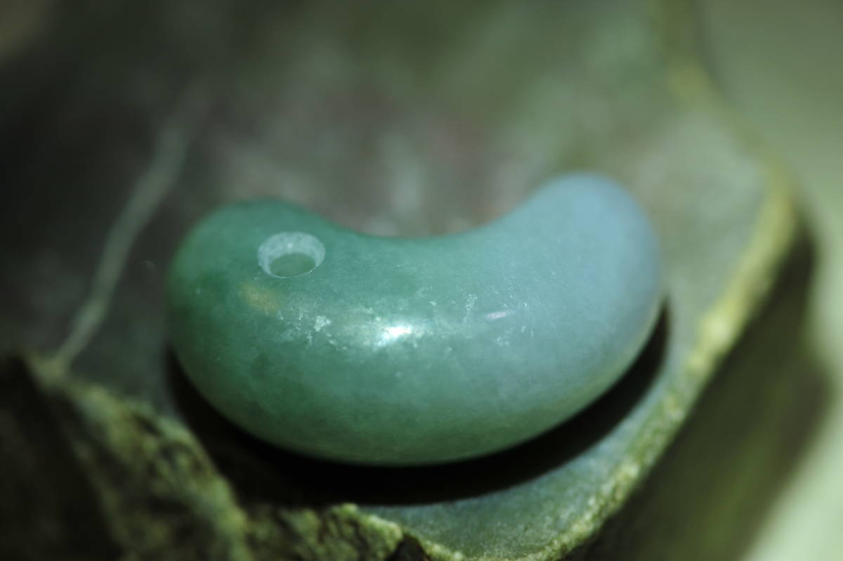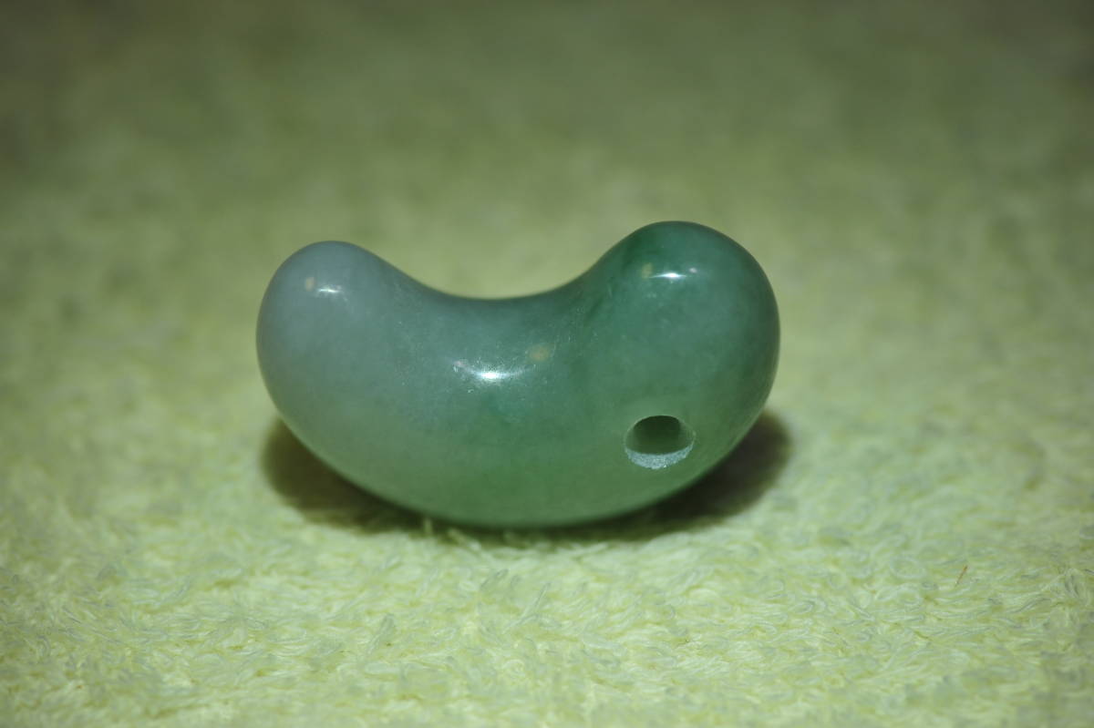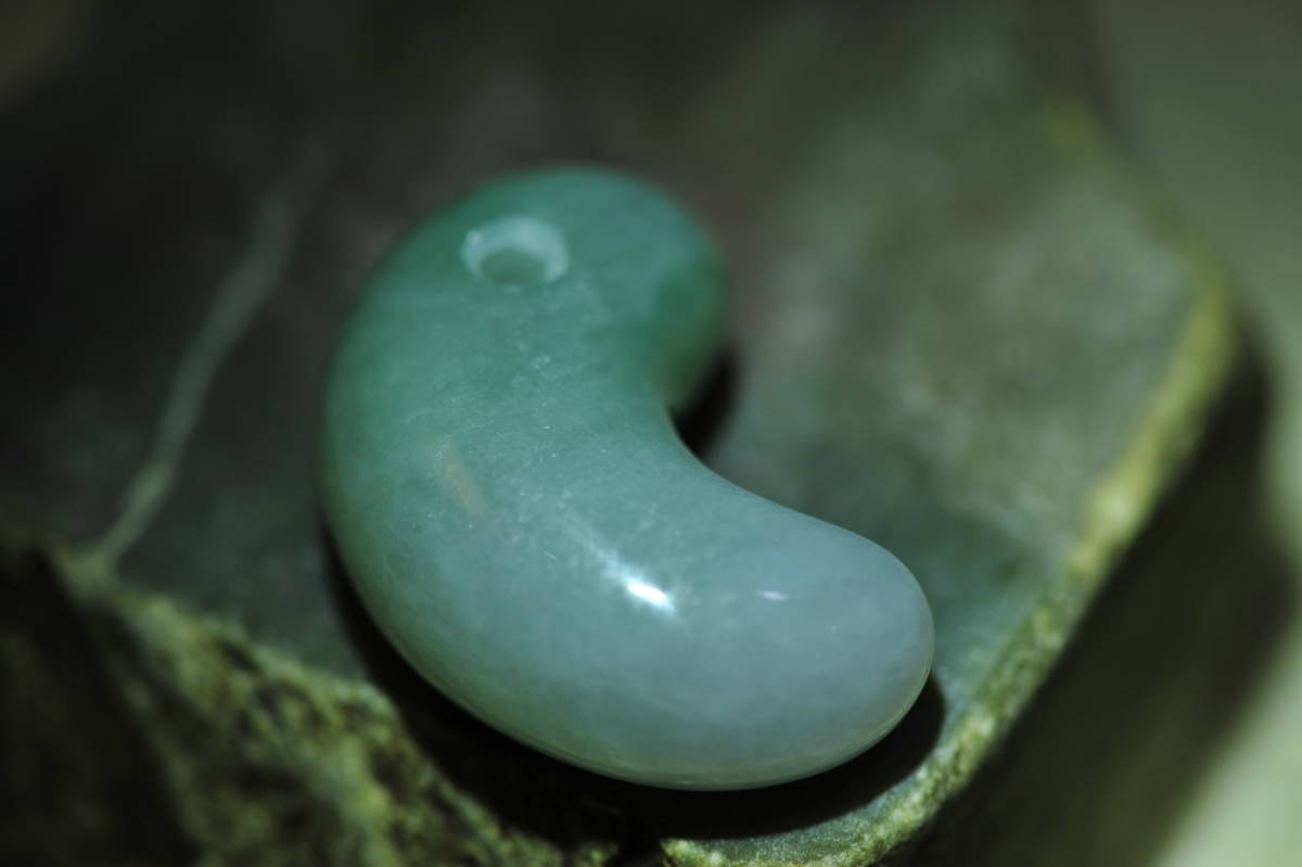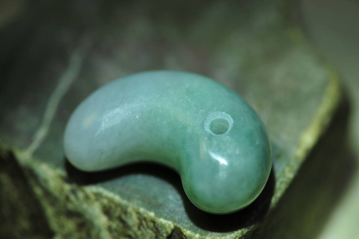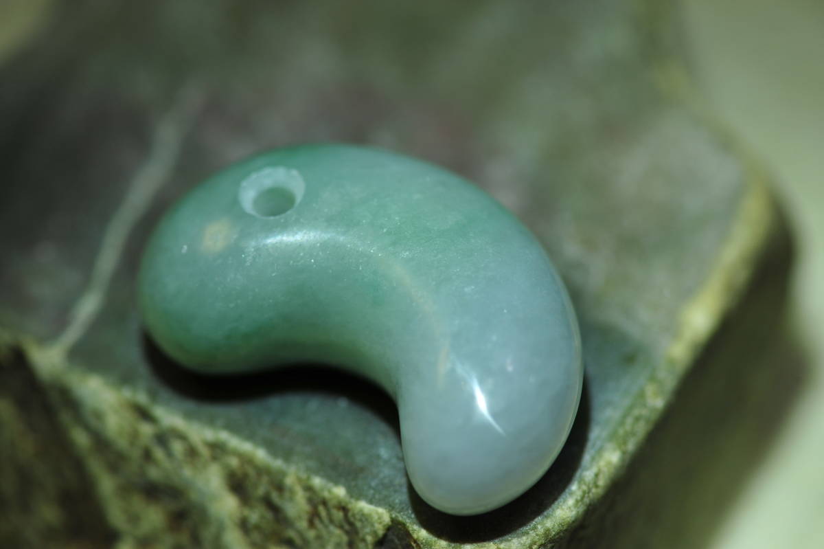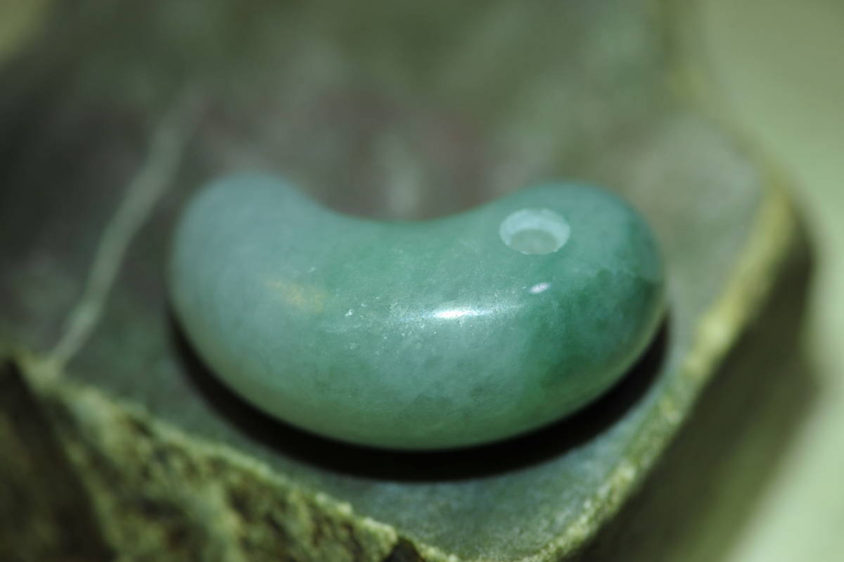 ミャンマー産翡翠を使って、日本国内で製作された翡翠の勾玉です。