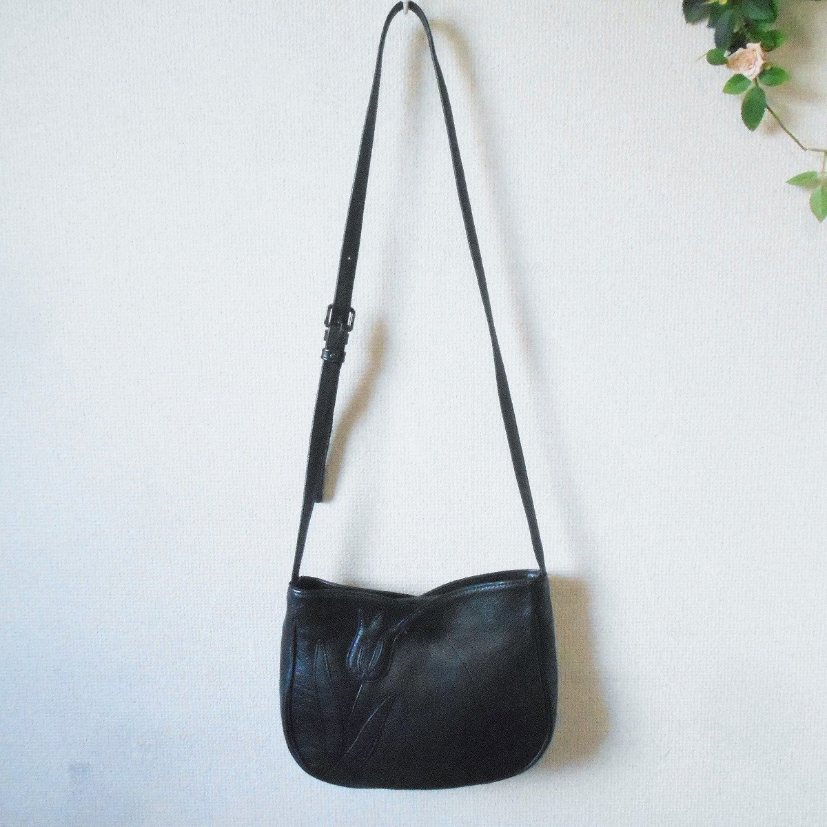 【ポイント】イビザのショルダーバッグになります。お色は黒色で、チューリップと思われるお花が付いています。
