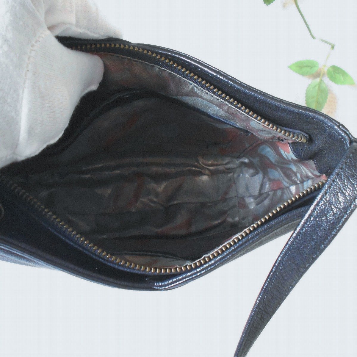入れ口はファスナー式で、ポケットは中にファスナー付きが1つ、ファスナー無しが1つございます。