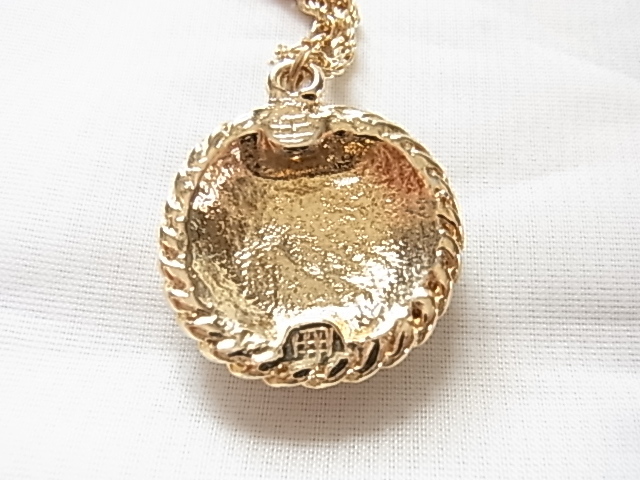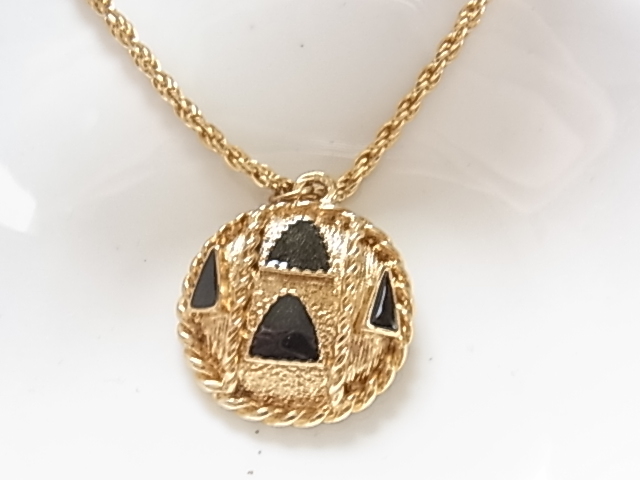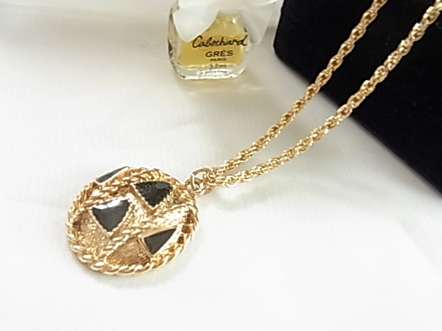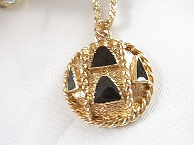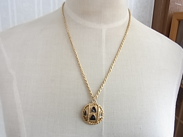ビンテージ/ヴィンテージ オニキス調の黒色 ブラックカラーの三角形調が印象的 丸いトップが素敵 ゴールドトーン ネックレス◎◎