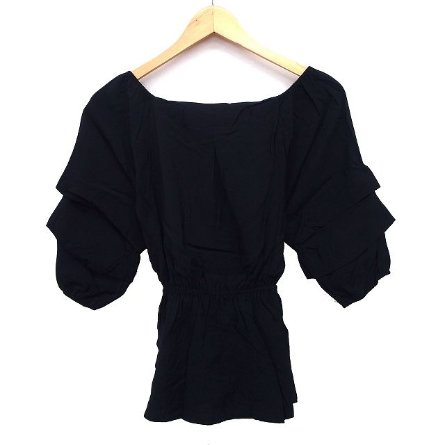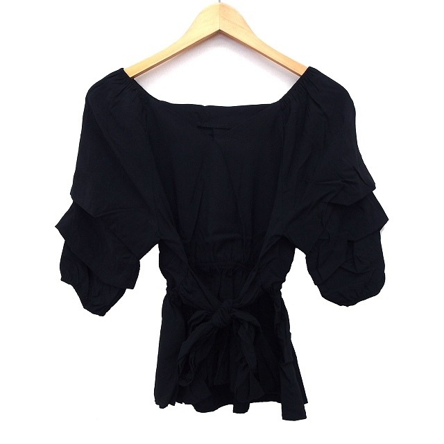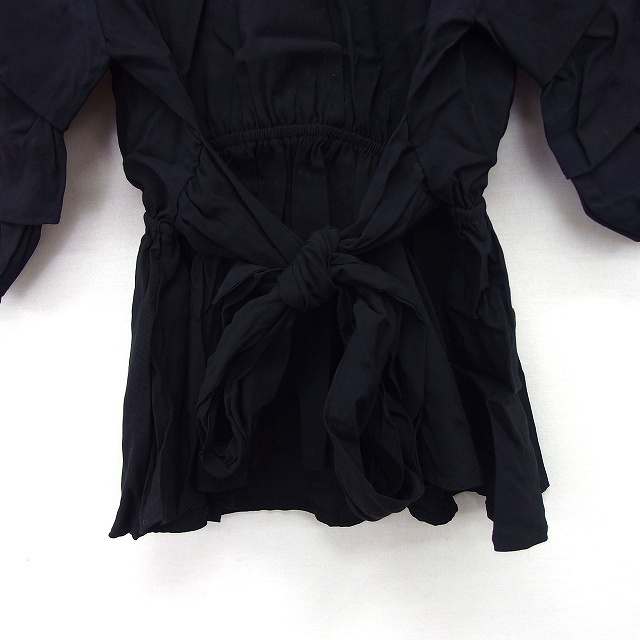 フィフス fifth カットソー ブラウス シンプル ウエストリボン ペプラム ティアード袖 七分袖 Vネック ブラック 黒 /HT12 レディース