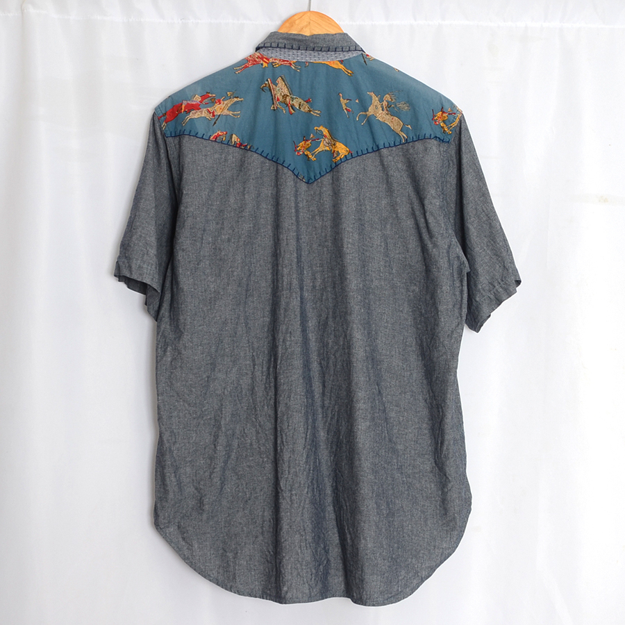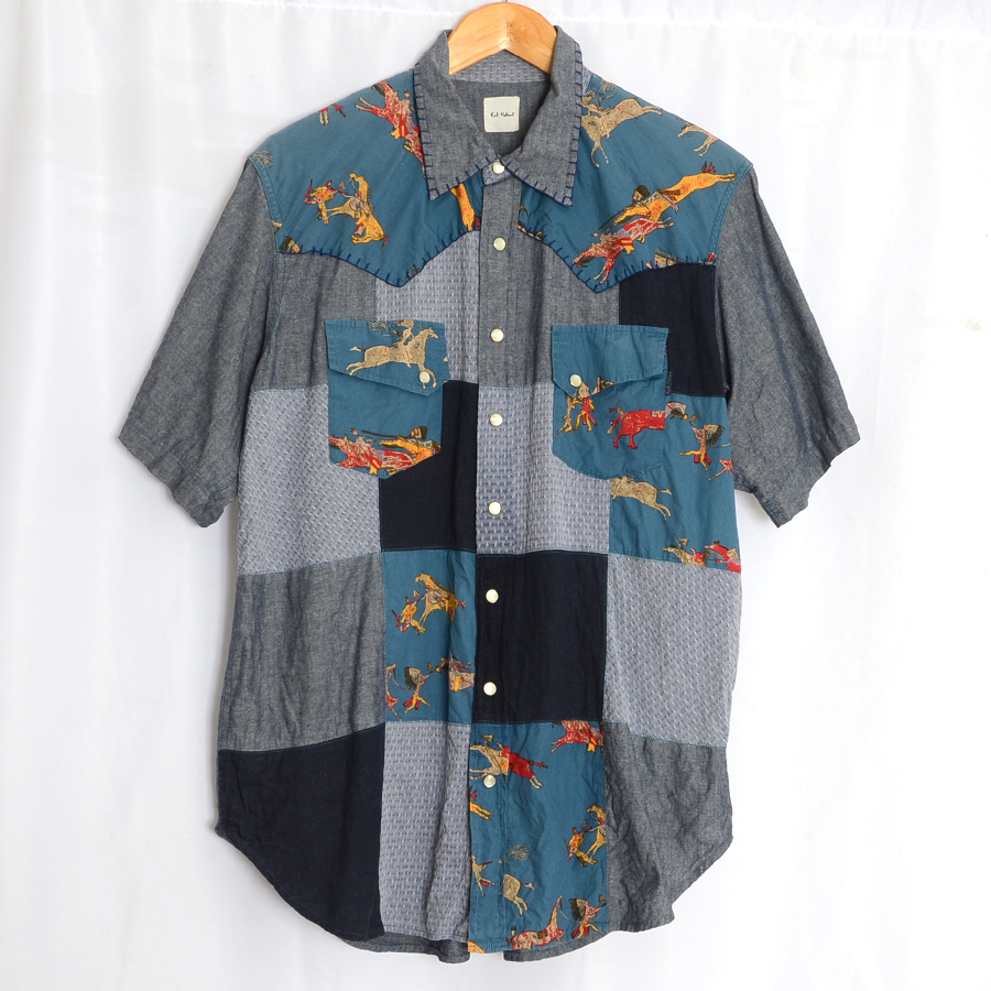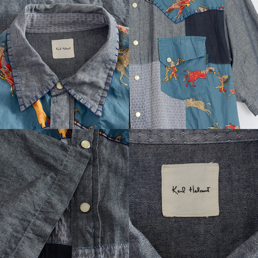 KS131 カールヘルム KARL HELMUT 半袖シャツ ウェスタンシャツ L 肩幅48 パッチワーク メール xq