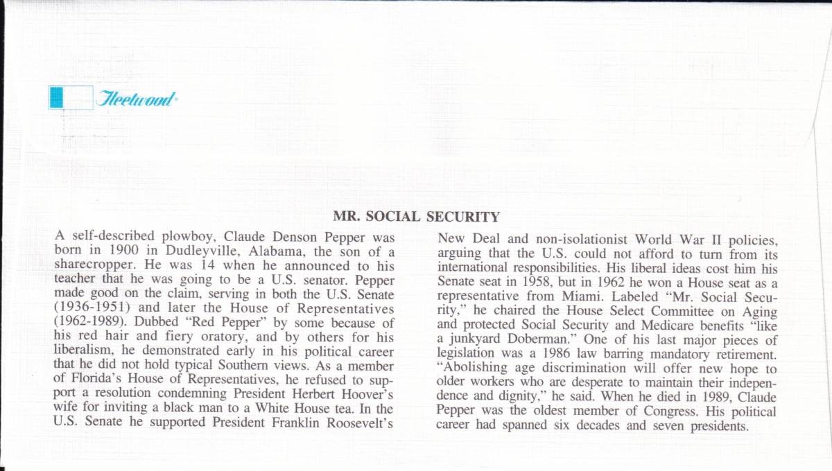 【FDC】著名人:クロードペッパー(2000年)(アメリカ) t4155