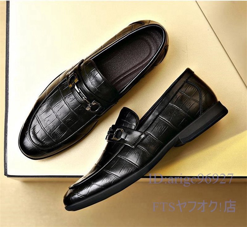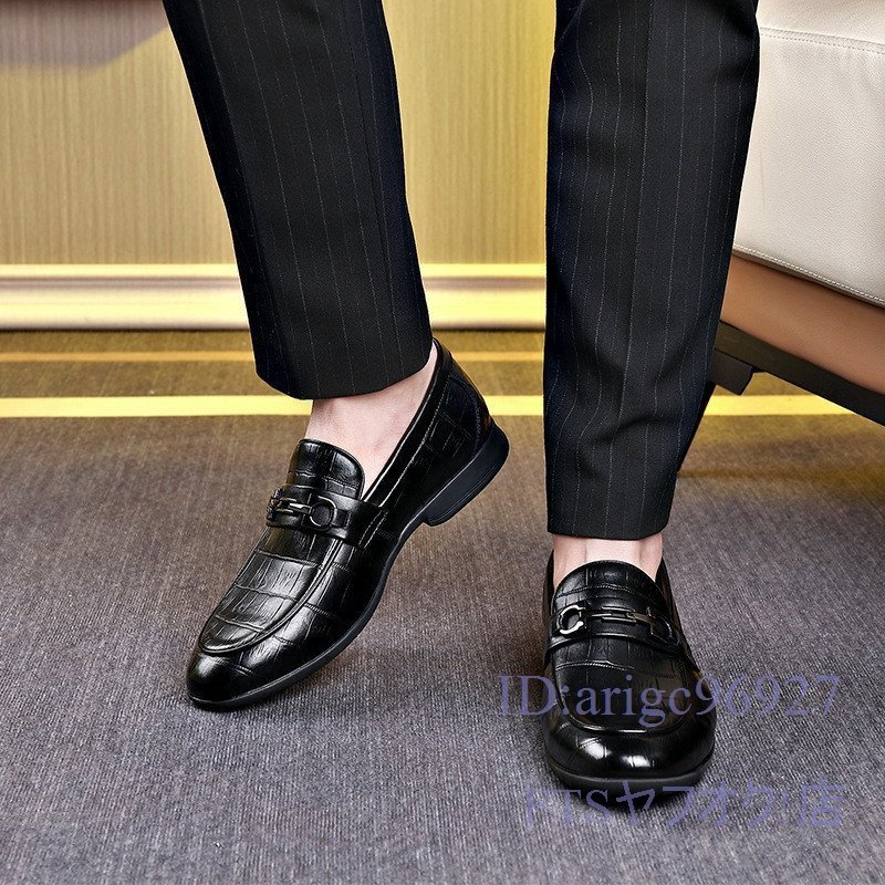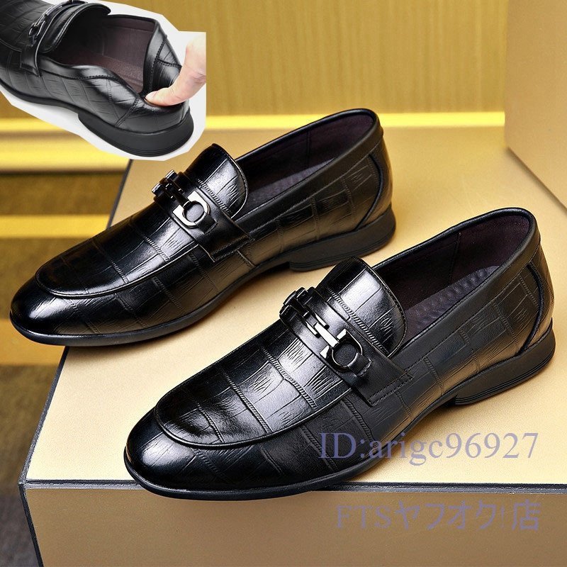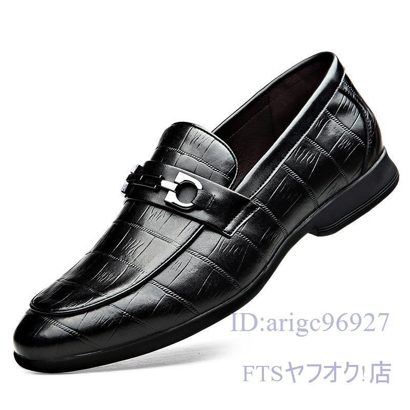 T843☆新品ビジネスシューズ スリッポン メンズ ローファー 紳士靴 ドライビング フェイクレザー 滑り止め 黒 25.0cm