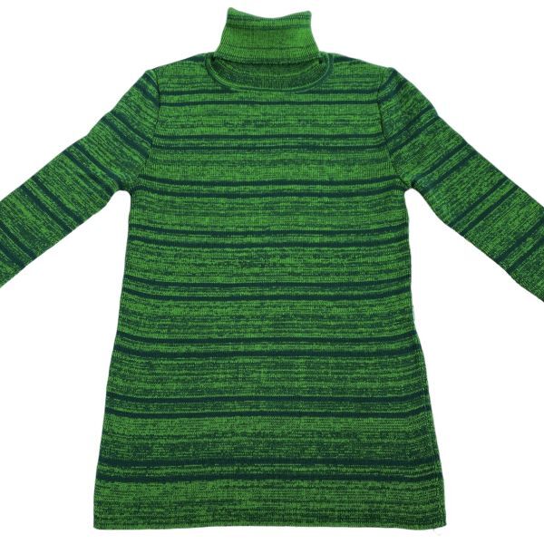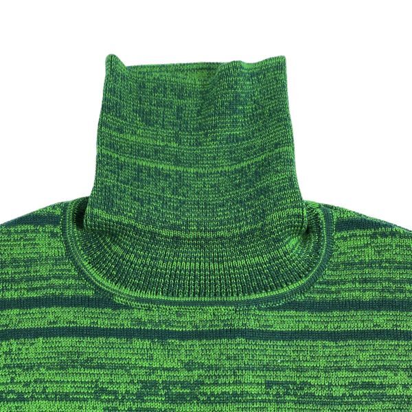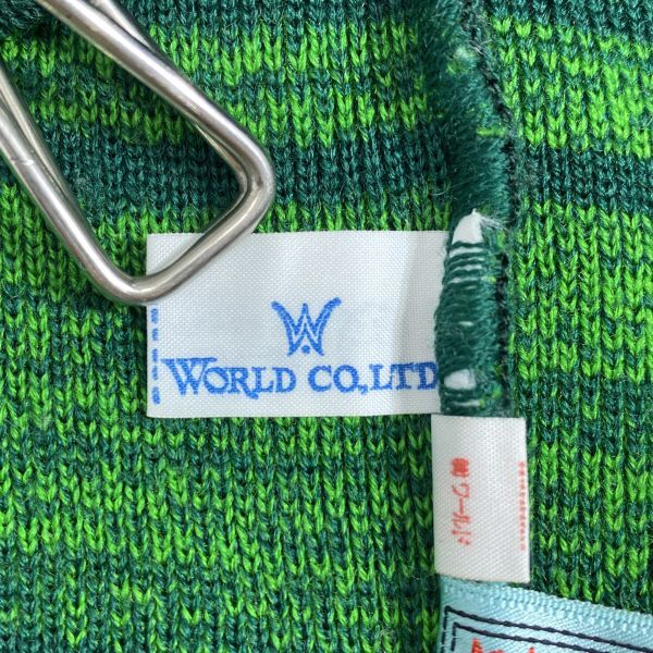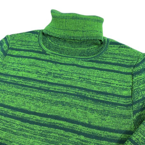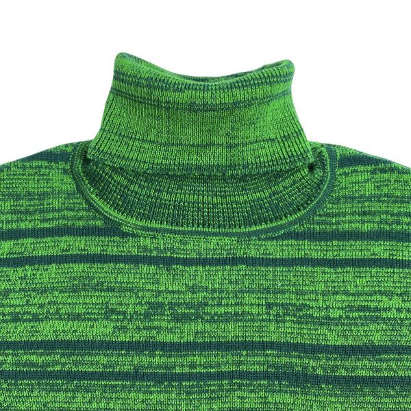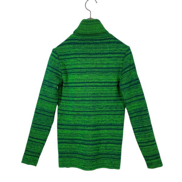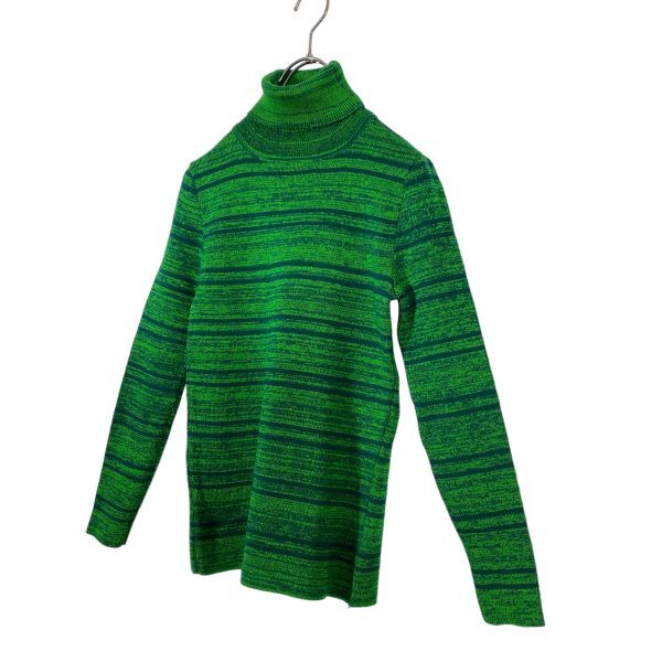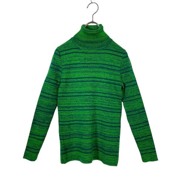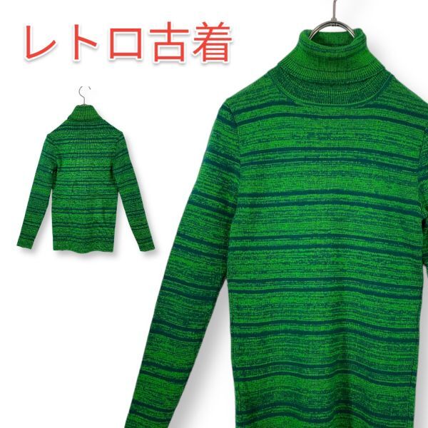 【レア】ビンテージ ワールド 希少 70 80s ハイネックセーター ニット 緑 グリーン ボーダー柄 スリム 匿名配送