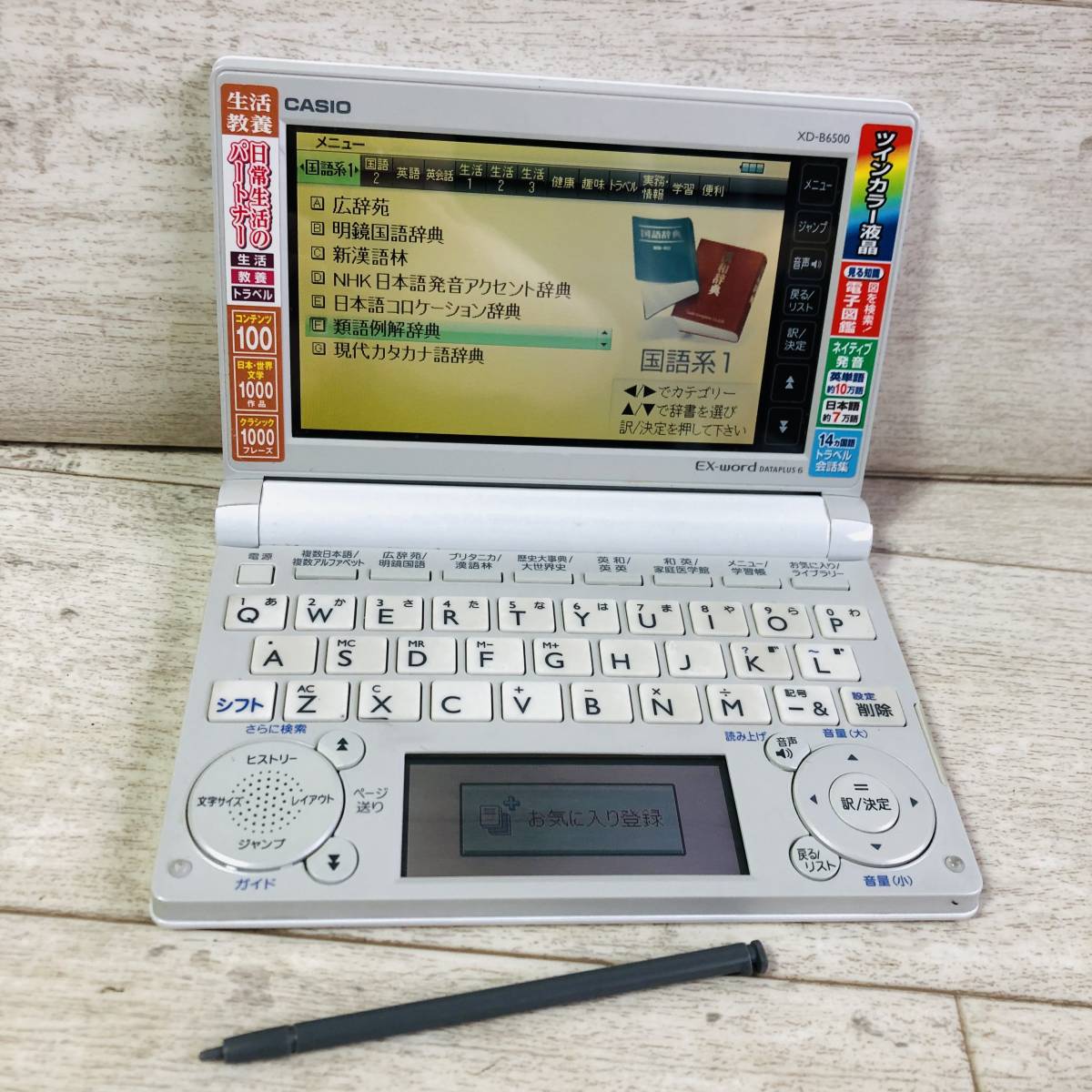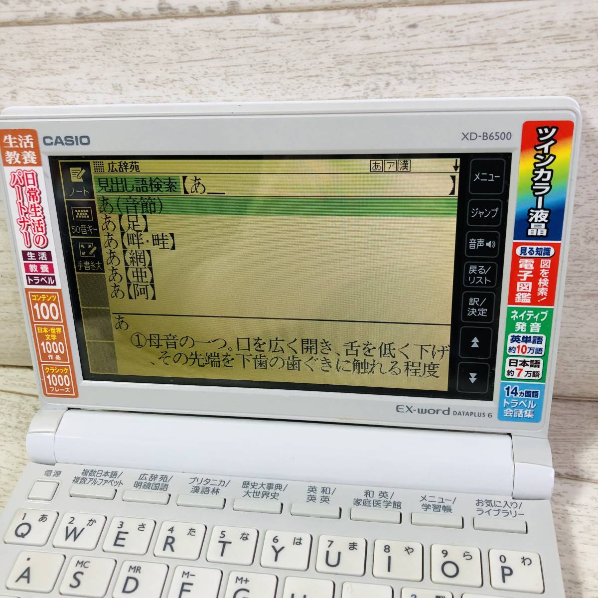 | ▼商品状態 カシオ EX-word XD-B6500 各種ボタン・音声・画面表示・タッチパネルの動作確認済みです。 中古品の為多少の使用感はございますが目立つダメージなく美品です。 状態等写真をご参照ください。 ※乾電池は付属しません。 ![]() ________________________________________________________________ | |||||||