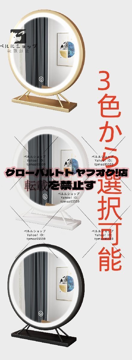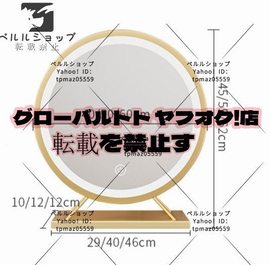 【大型サイズ&使用簡単】鏡サイズは45*45cm。上半身が余裕で映り、メイク・髪・服を整えるには最適な大きさです。鏡との距離感を把握しやすく、顔全体のメイクバランスもしっかり取れます。ボタンをタッチすることで、電源オン/オフとライトモードの切り替えが簡単にできます。