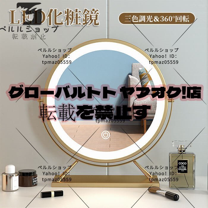 【様々な角度から】360度無段階回転できる仕様、さまざまな角度から顔を均等に照らせます。前髪や鼻、あごの下の影を消して、正確にメイクをすることができます。顔全体に光がまわっていることがメイクには理想的な状態です。またフレームとベースは丈夫な鋼鉄で作られ、耐久性抜群であなたのメイクアップを長くサポートできます。
