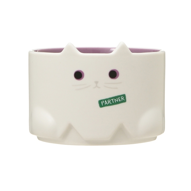 スターバックスのお店のパートナーに扮した、白猫デザインのマグカップです。