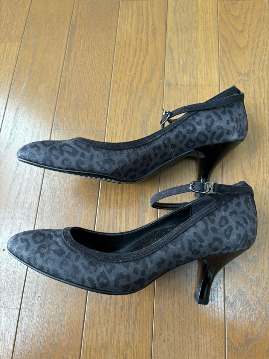 *新品タグ箱なし 20,900円 *ストラップは取り外し可能 *サイズ 24.5cmE *色 黒グレー *素材 山羊革 ■「すっきりフォルム」と「足裏サポート」の両方を兼ね備えた(7cmヒール)ラウンド・トゥタイプ。 レオパード柄のプリントを施したデザイン。 位置や方向にこだわった、安定感の良いオリジナルヒールを使用しています。 ストラップはフックタイプで取り外しが可能。 足裏の凹凸に合わせた3D形状の「カップインソール」(取りはずし可)仕様で足裏と靴とのフィット感を高め、足の前滑りや踏み付け部・かかとに集中しがちな荷重をやわらげます。 |