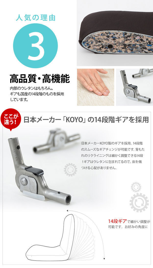 | 背筋ピン座椅子 Mサイズ。 美大出身のインハウスデザイナーが人間の体に合わせた形状を細部にこだわってデザイン。 お尻にフィットするようにモールド成型で正しい姿勢に自然になるように考えられています。 ウレタンを金型に敷き詰めて圧縮するモールド成型。 長期間使用してもヘタリにくく、座っていても疲れにくく、少し硬めのもっちりとした座り心地。 低反発素材を使用せず、体全体をやさしく受け止めるので、腰痛の方にも好評です。 日本メーカーKOYO製のギアを採用。 14段階のスムーズなギアチェンジが可能。 ギアはウレタンに包まれているので、床を傷つける心配がありません。 コンパクトなサイズで場所を取りません。 椅子の上にも置ける考えられたなんとも絶妙なサイズ感。 安心の日本製、熟練した職人の手作りでひとつひとつ丁寧に作られています。 |